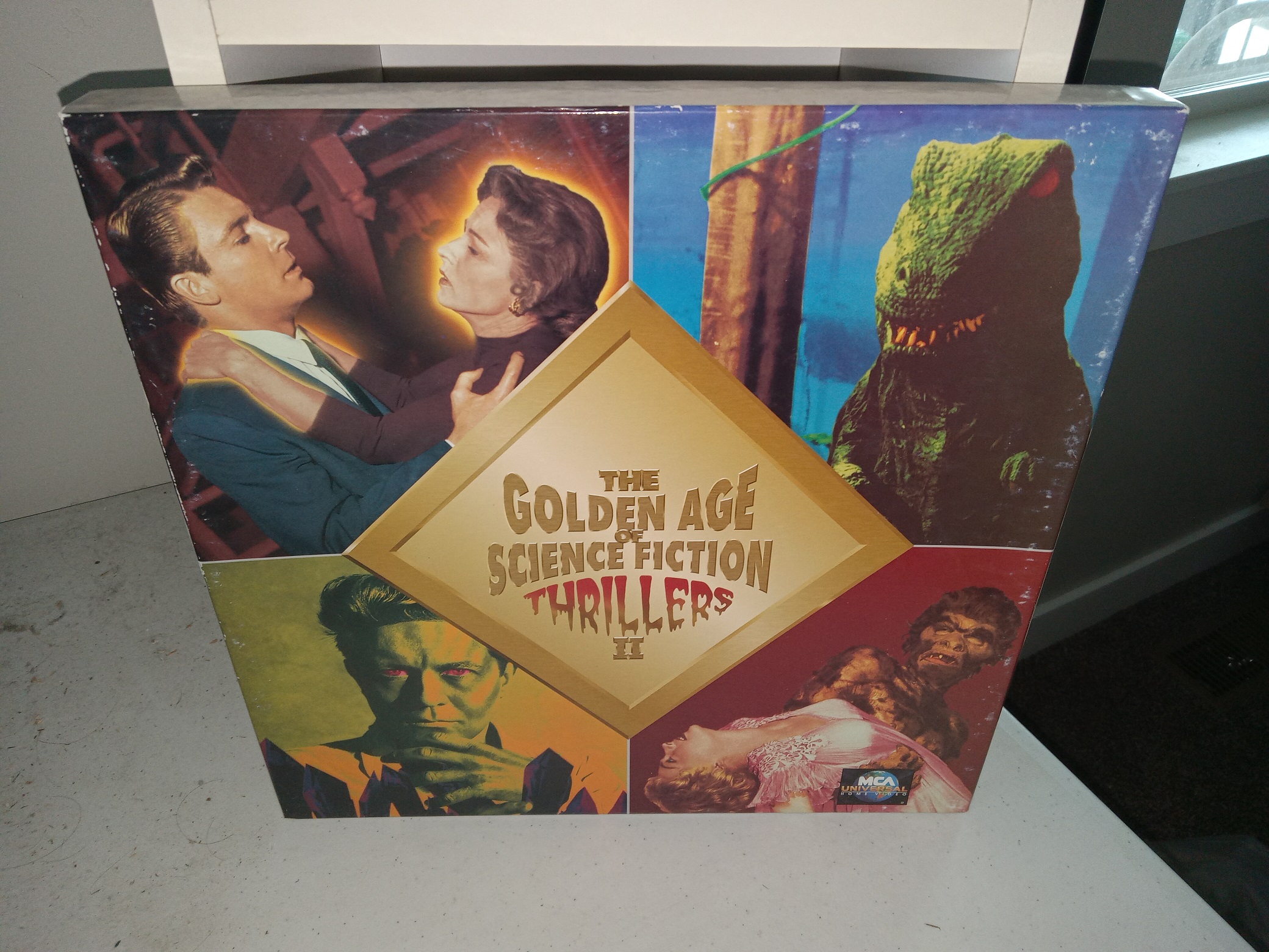 Good condition set of 3 LaserDiscs kept within the original case. The case has some scuffing, a hole, and some price stickers. The discs have no visible wear or marks.