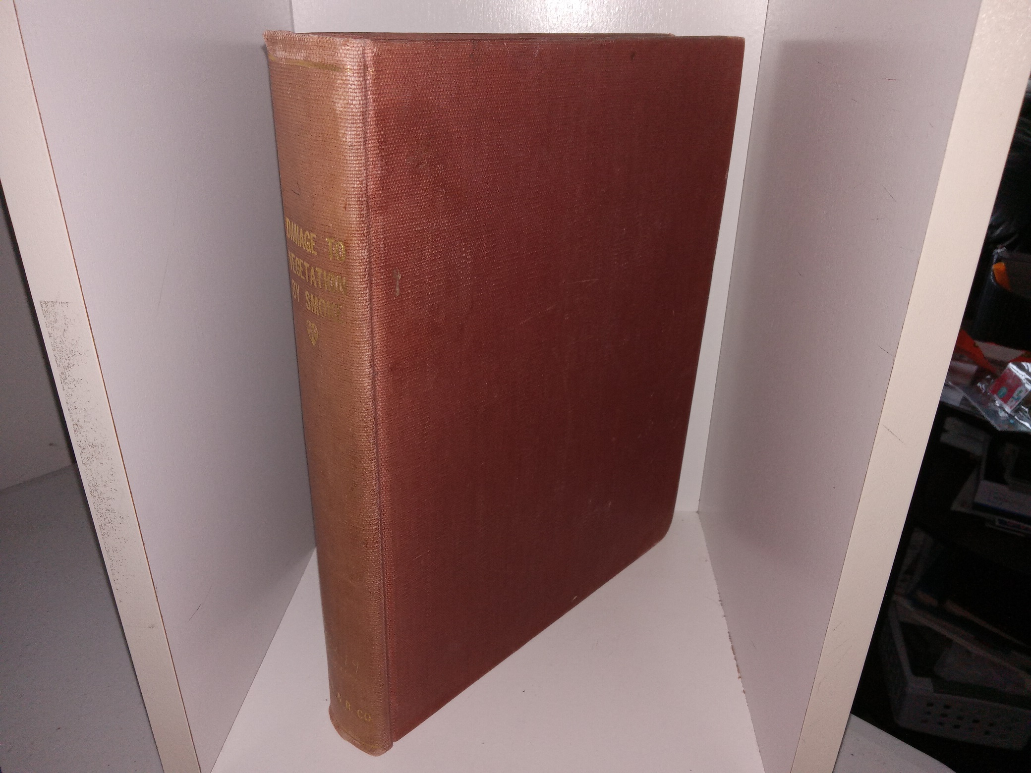 Fair condition, large, faded burgundy hardcover with no dust jacket. The spine has faded to be mostly tan. The cover has fading, scuffing, stains, pen marks, and adhesive residue. The internal binding is torn and slightly loose. The inside front cover and front flyleaf have ex-library ink stamps. The back inside cover has an ex-library catalog card pouch. Som3e pages have stains, but the text throughout is legible.