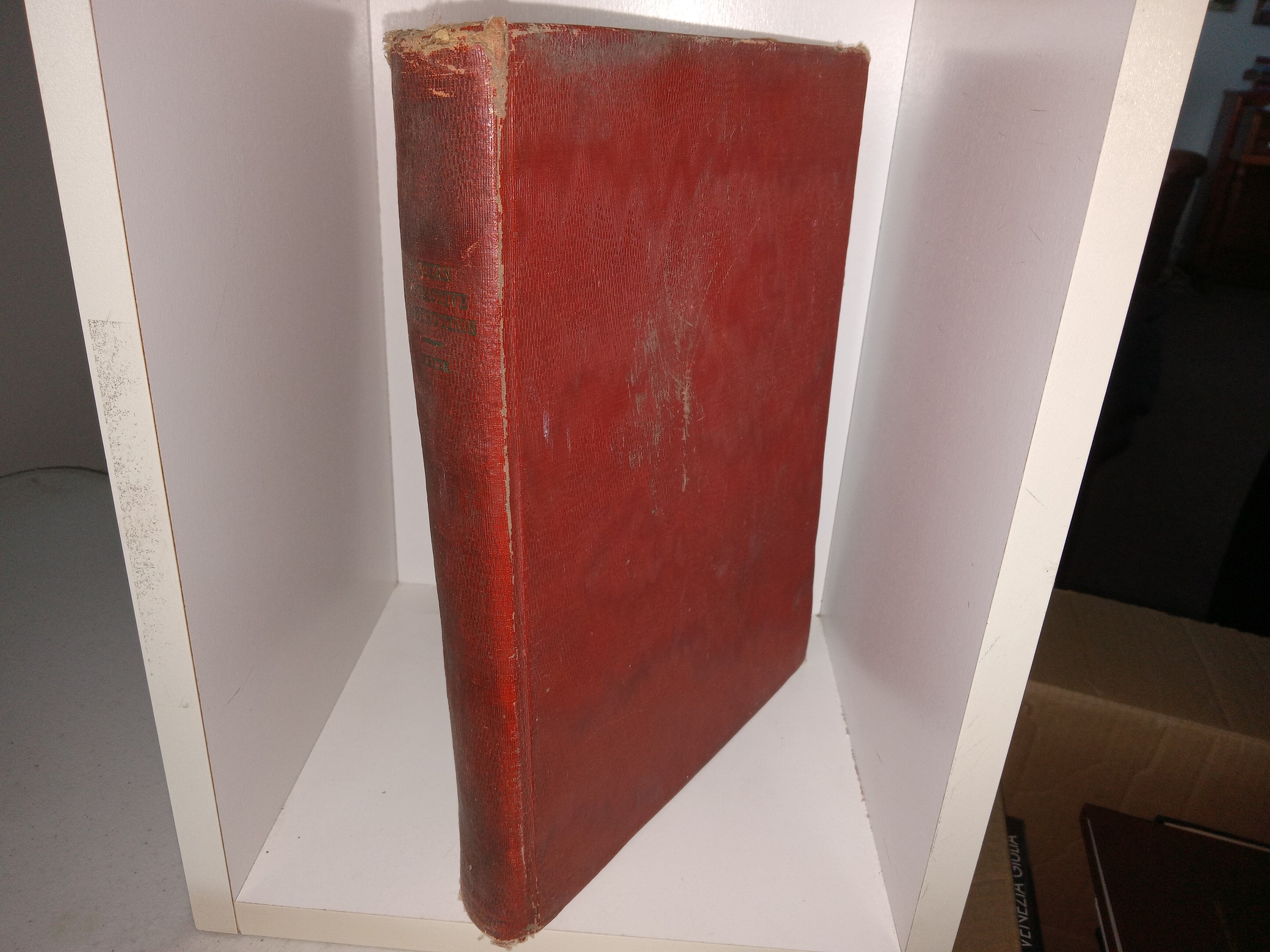 Fair condition, large, maroon hardcover with no dust jacket. The cover has scuffing, fading, tears, small pieces torn off, fraying, scratches, and stains. The binding is crooked. The inside covers and flyleaves have the remains of large ex-library stickers. Some pages have stains, yellowing, creases, wrinkling, tears, or small pieces torn off. The front flyleaf has writing in pencil, and eraser marks.
