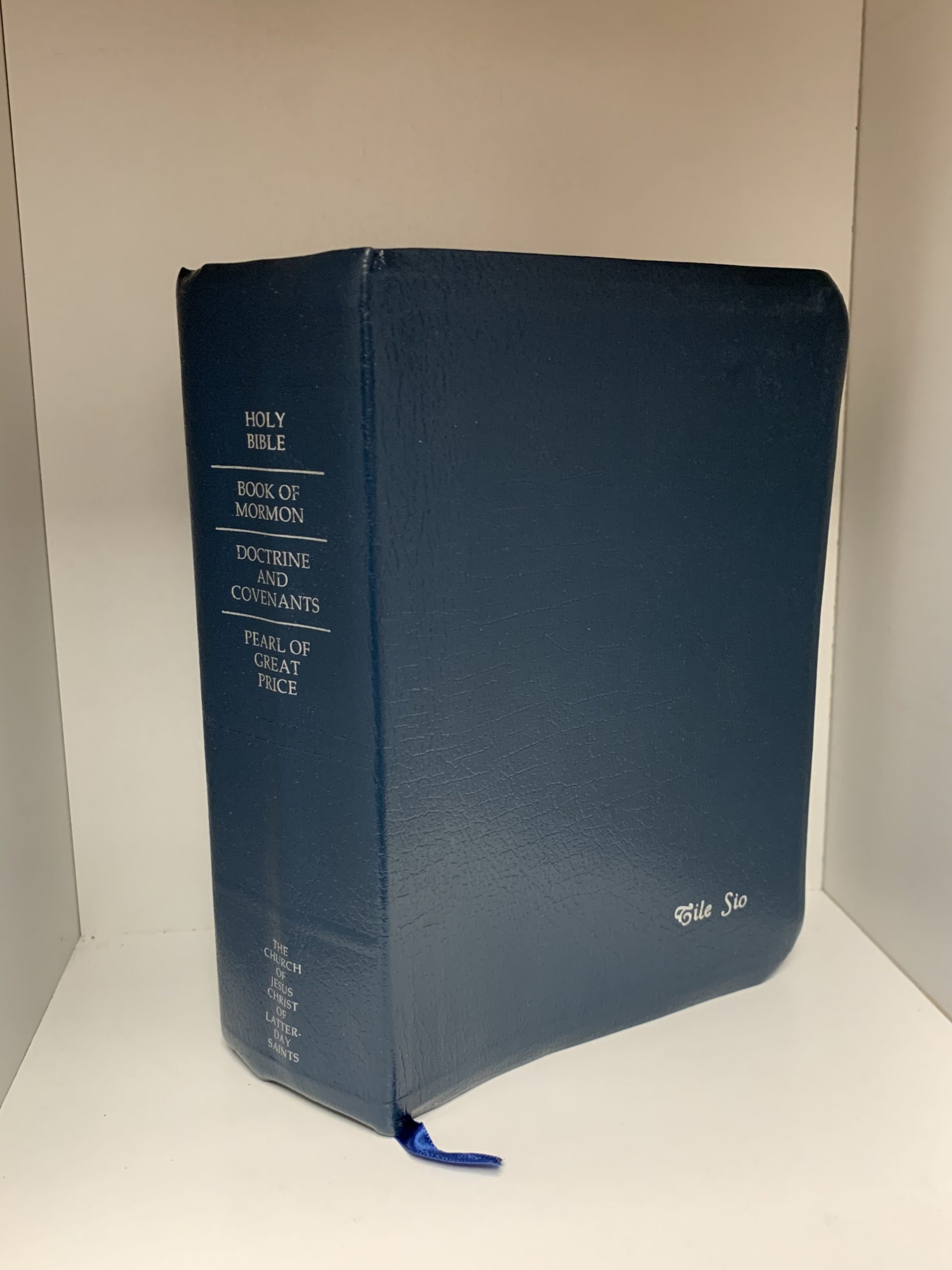 These scriptures are gently used, there is an engraved name on the bottom right, and they are also lightly marked and highlighted. This set has two ribbon bookmarks and also features tabs with the book abbreviations to easily locate books of scripture.