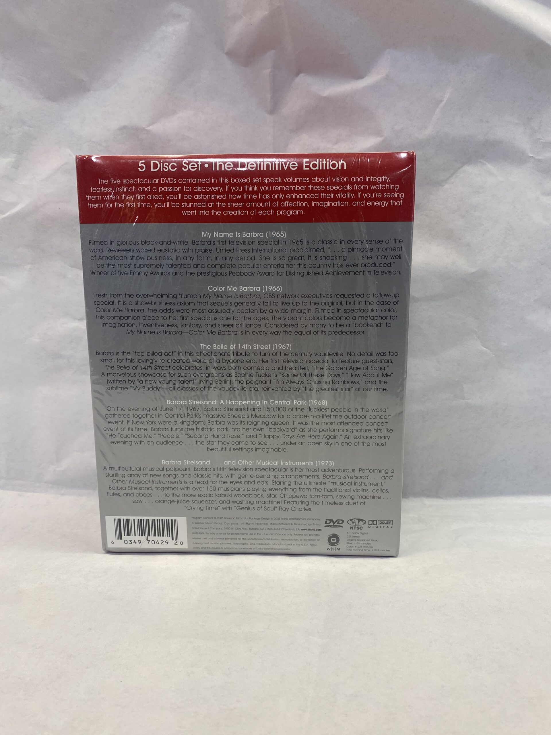 Barbara Streisand, The Television Specials, 5 DVDs Set. The Definitive Edition, 2005. Includes; My Name is Barbara, Color Me Barbara, The Belle of 14th Street, Barbara Streisand: A Happening in Central Park, and Barbara Streisand and Other Musical Instruments.
