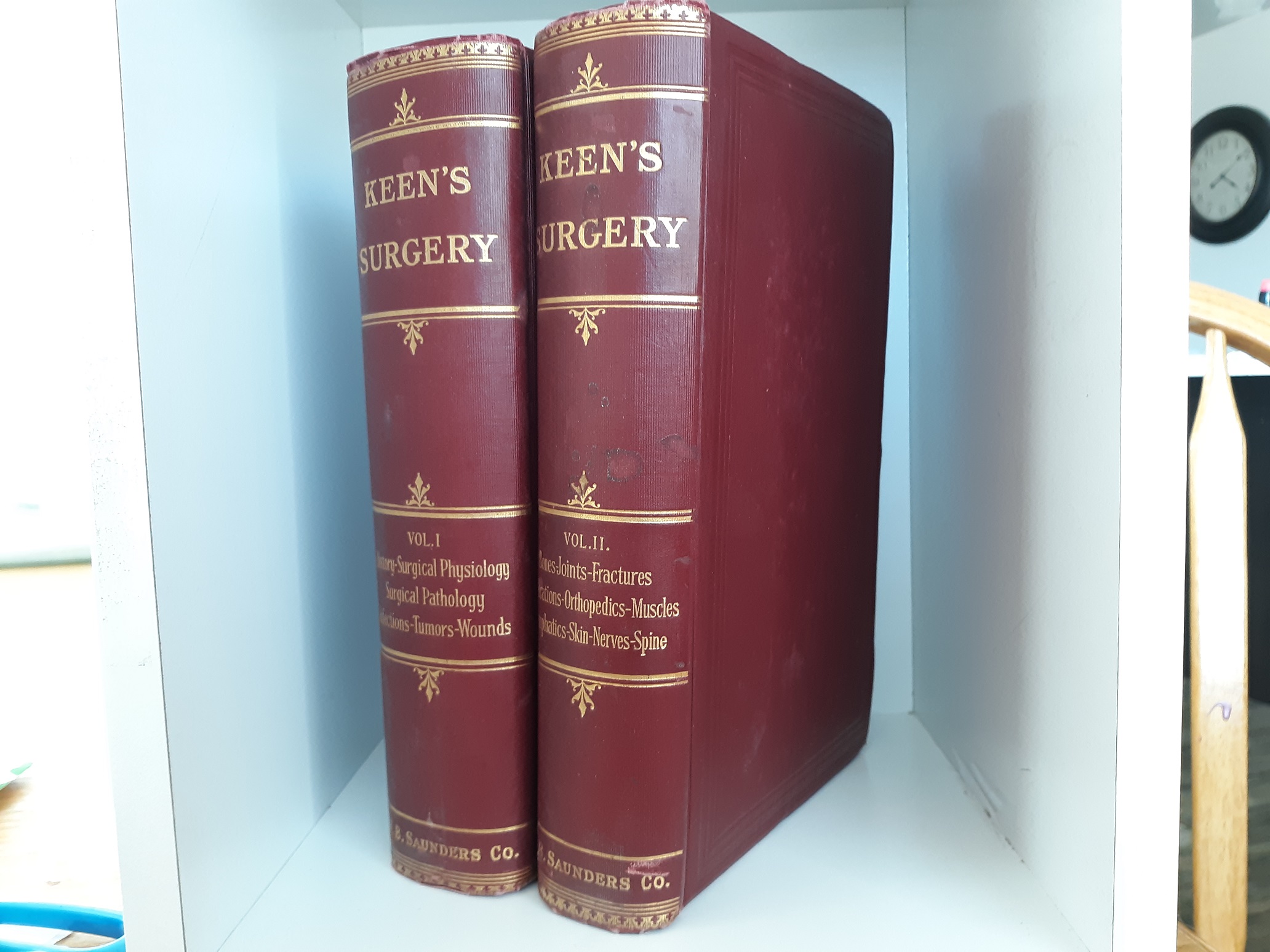 2 good condition, thick, burgundy hardcovers with no dust jackets. The covers have stains, scuffs, scratches, fading, crushed edges and corners, and fraying at the corners and edges. The inside covers have stamps, and writing in pen. The flyleaf has some writing in pencil. A couple pages have minor tears at the edges. Text and illustrations throughout are clean, clear, and legible…………………v702 Bx1832E