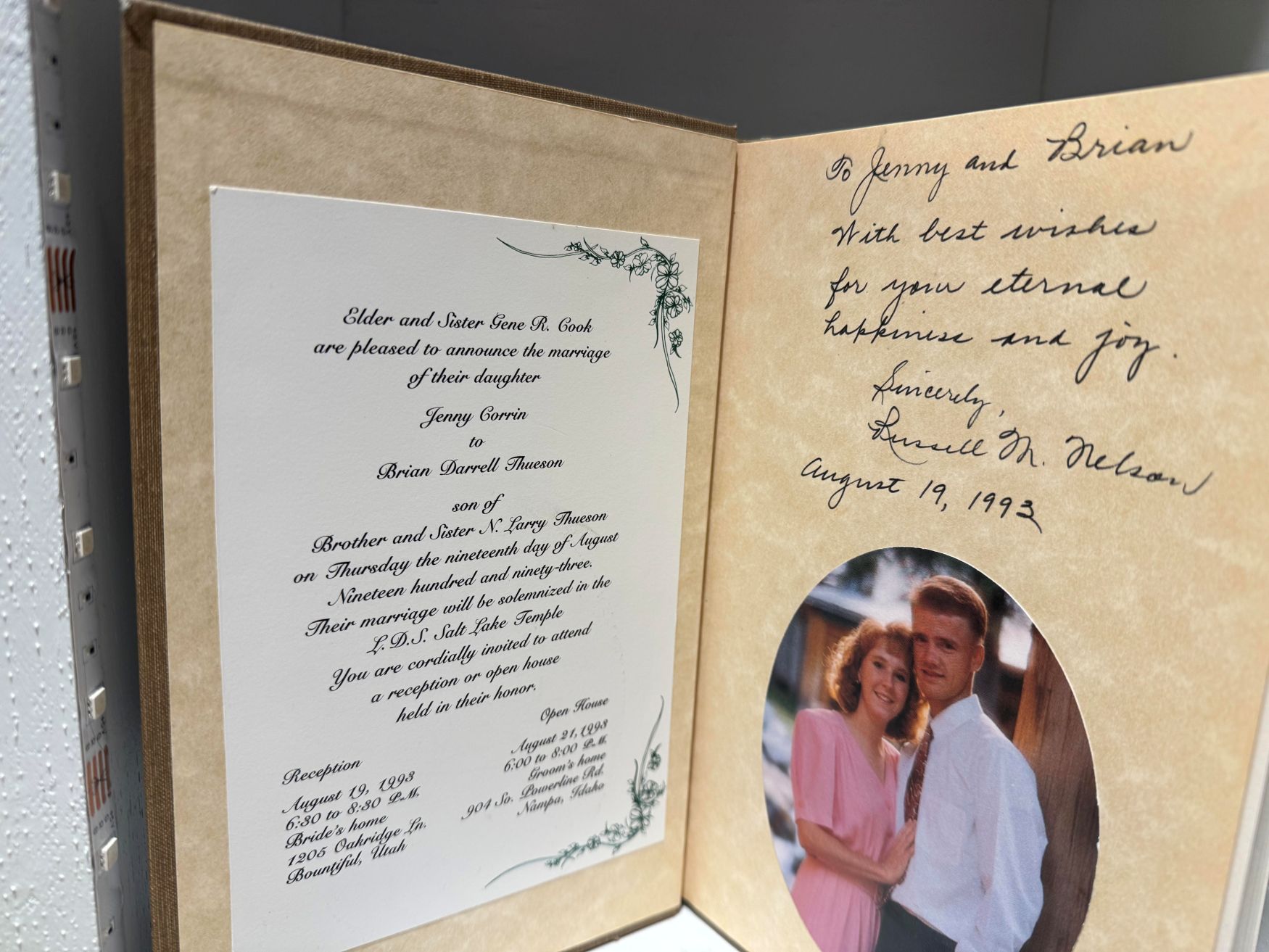 Inscribed to the daughter of Elder Gene R. Cook. Bottom right corner has some damage and corners are worn but text is clean and binding tight.