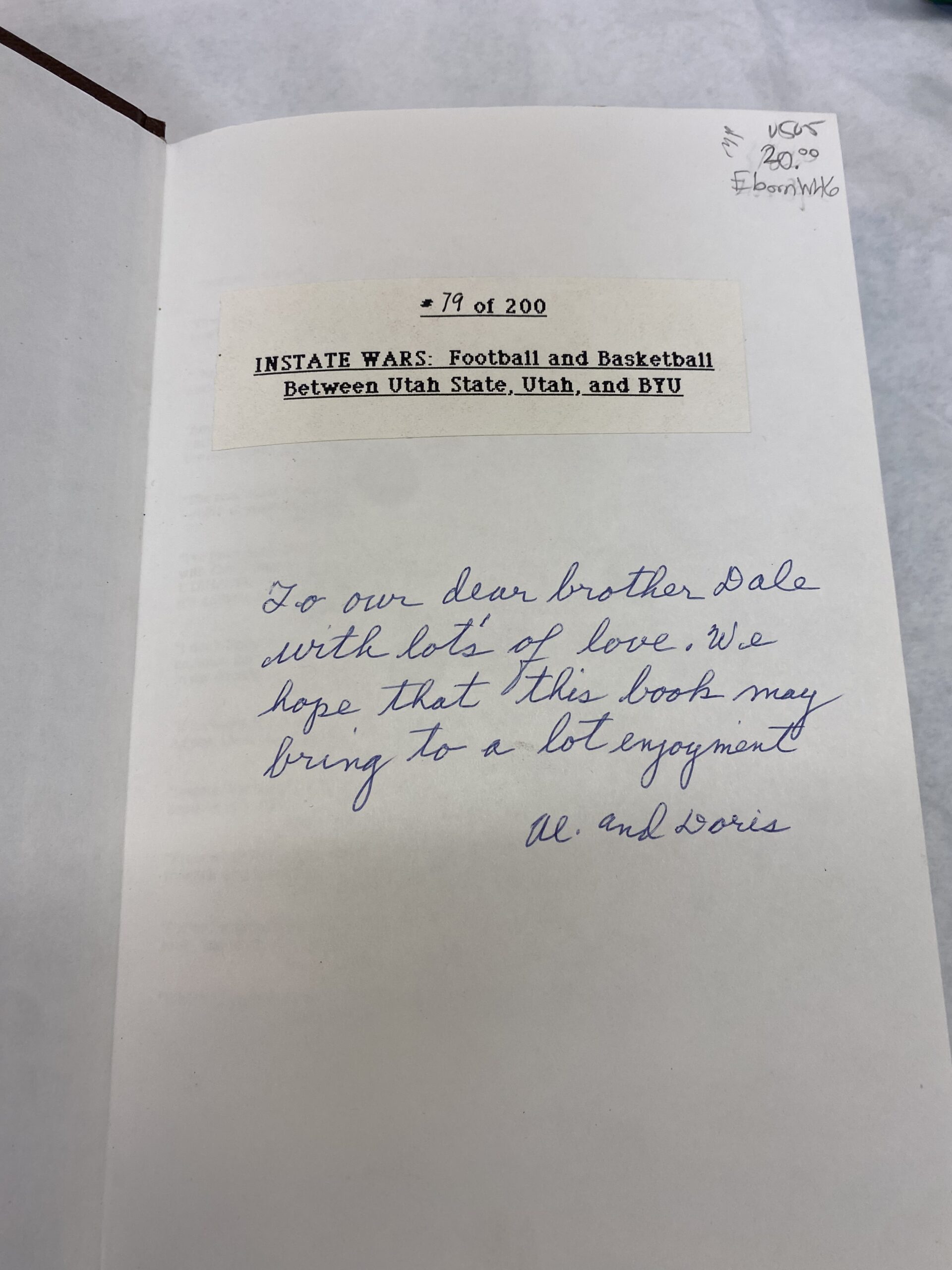 Instate Wars Football and Basketball Between Utah State, Utah, and BYU by Orvill Paller Jr. Leather Bound, 1993. Copy 79 out of 200.