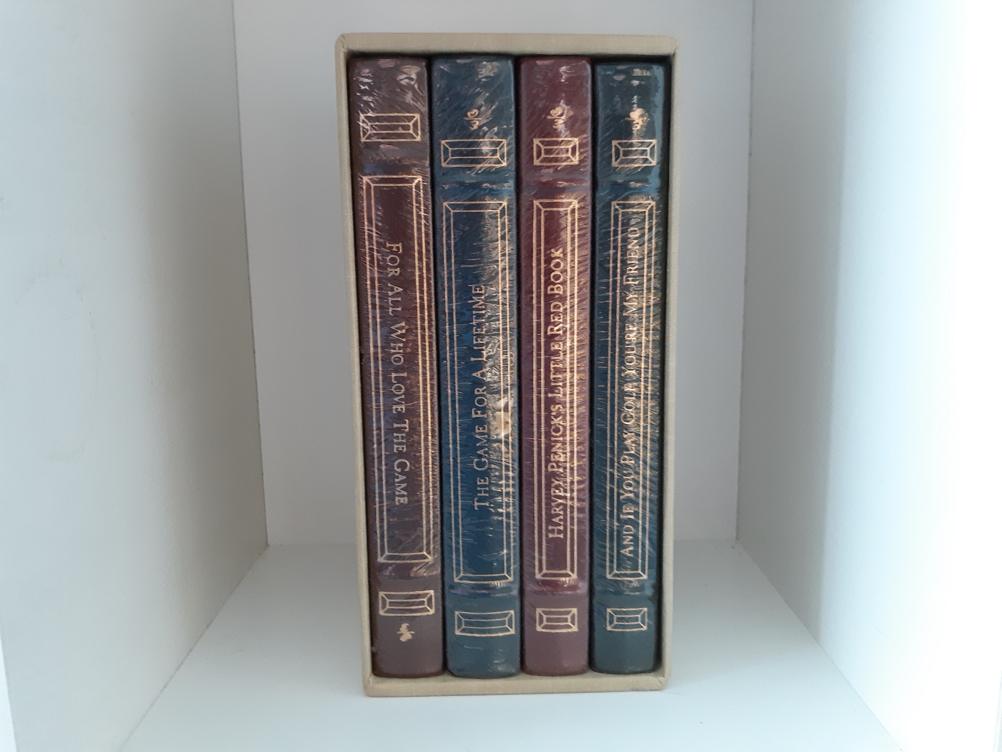 4 brand new leather-bound books still in their original, unopened plastic wrap within the original slip-box…………………………………v702 SU-6