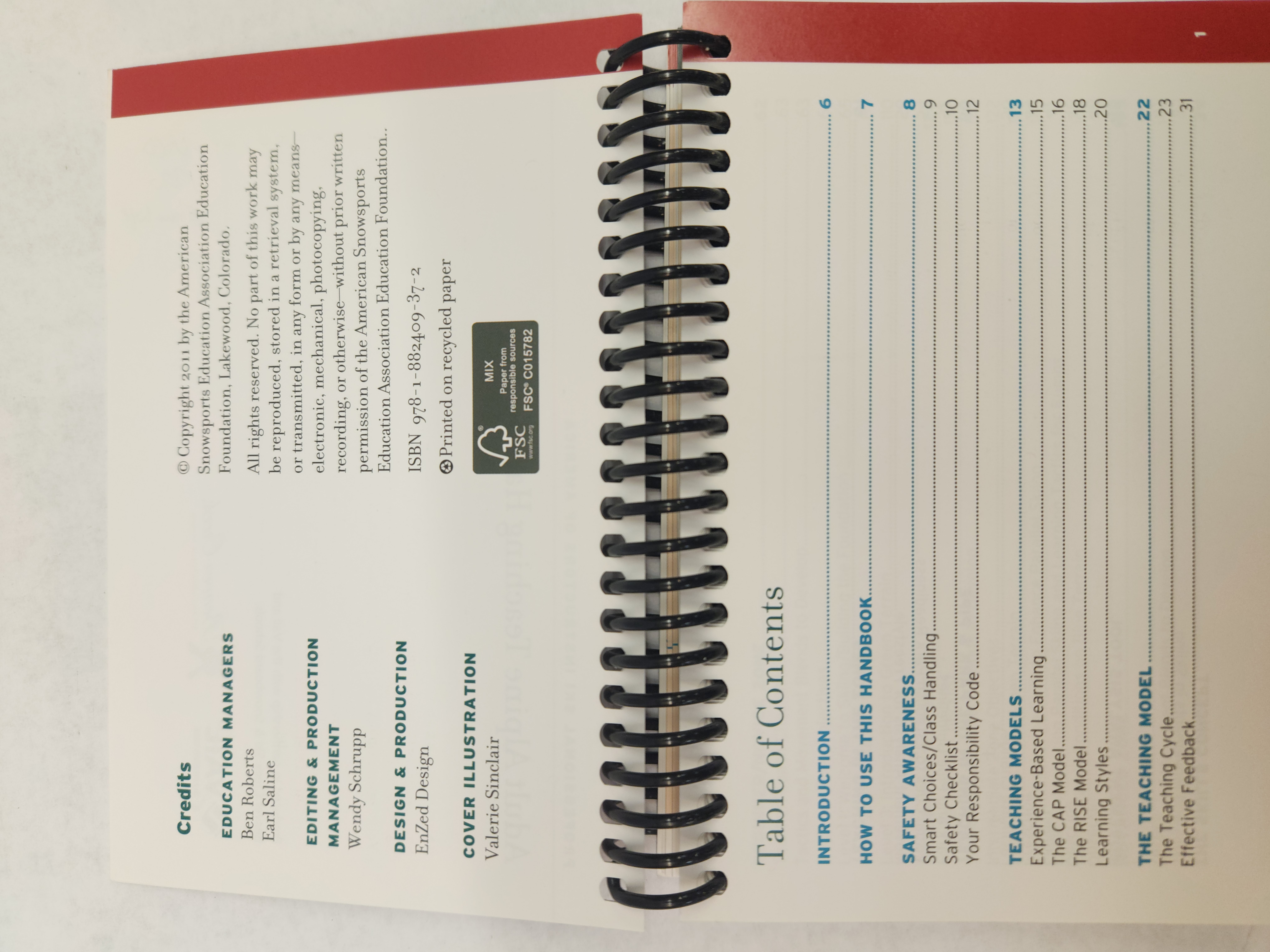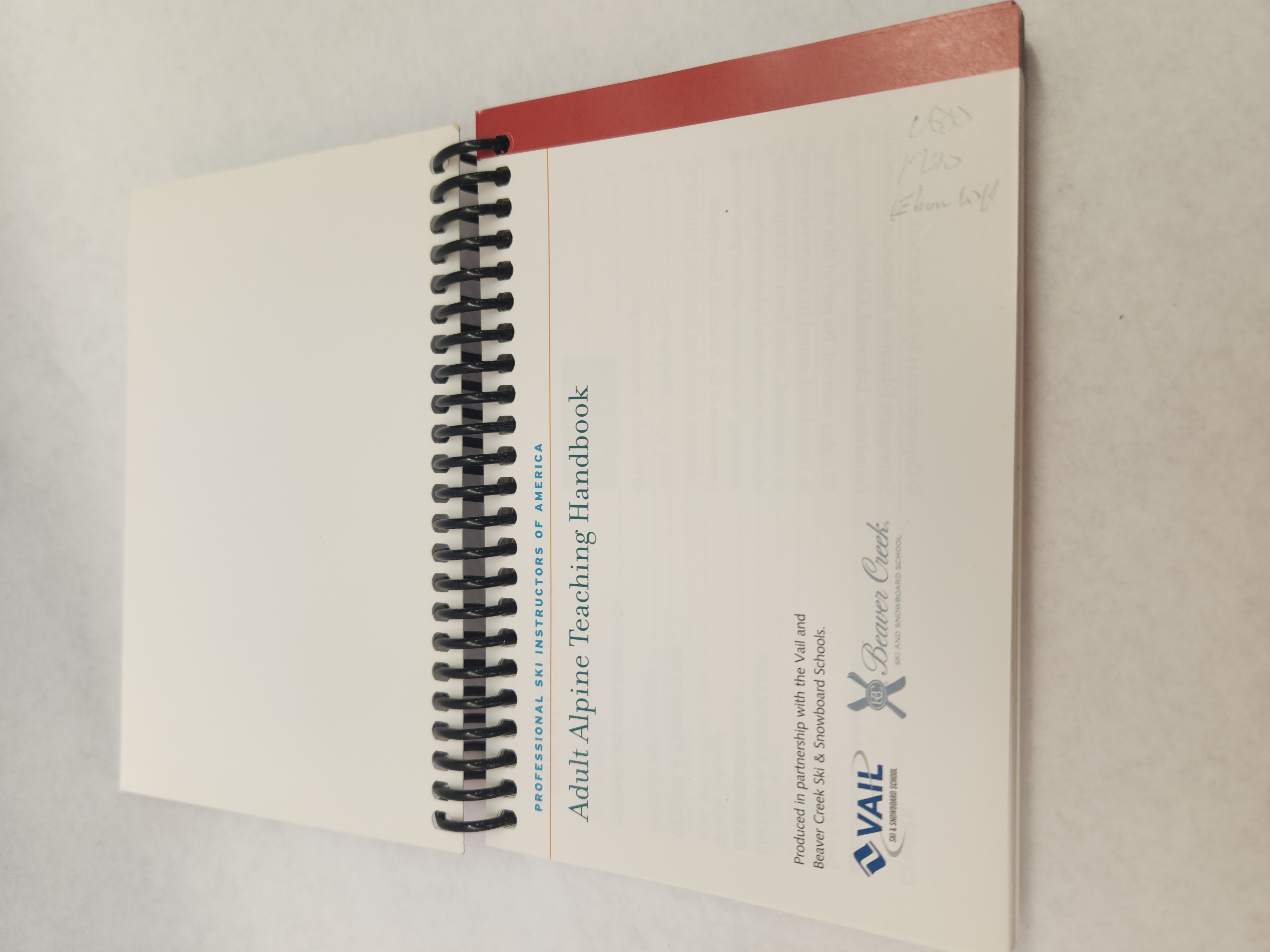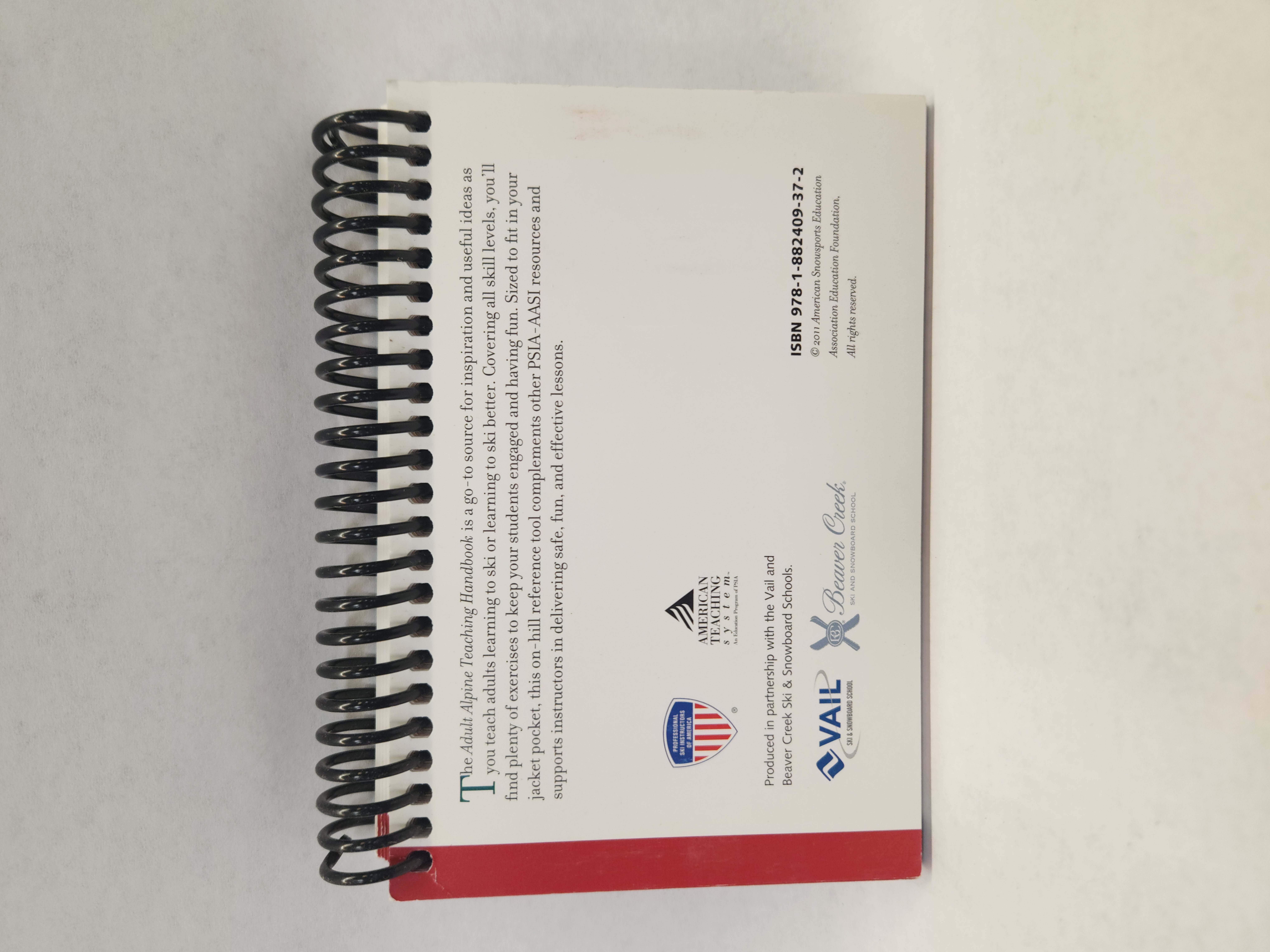 Adult Alpine Teaching Handbook:: Professional Ski Instructors of America (2011, Black Spiral Bound) Corner and edges show little to no shelf wear. Binding is good. Cover, front and back shows a little wear with some light scratch marks. No writing/marks on pages.