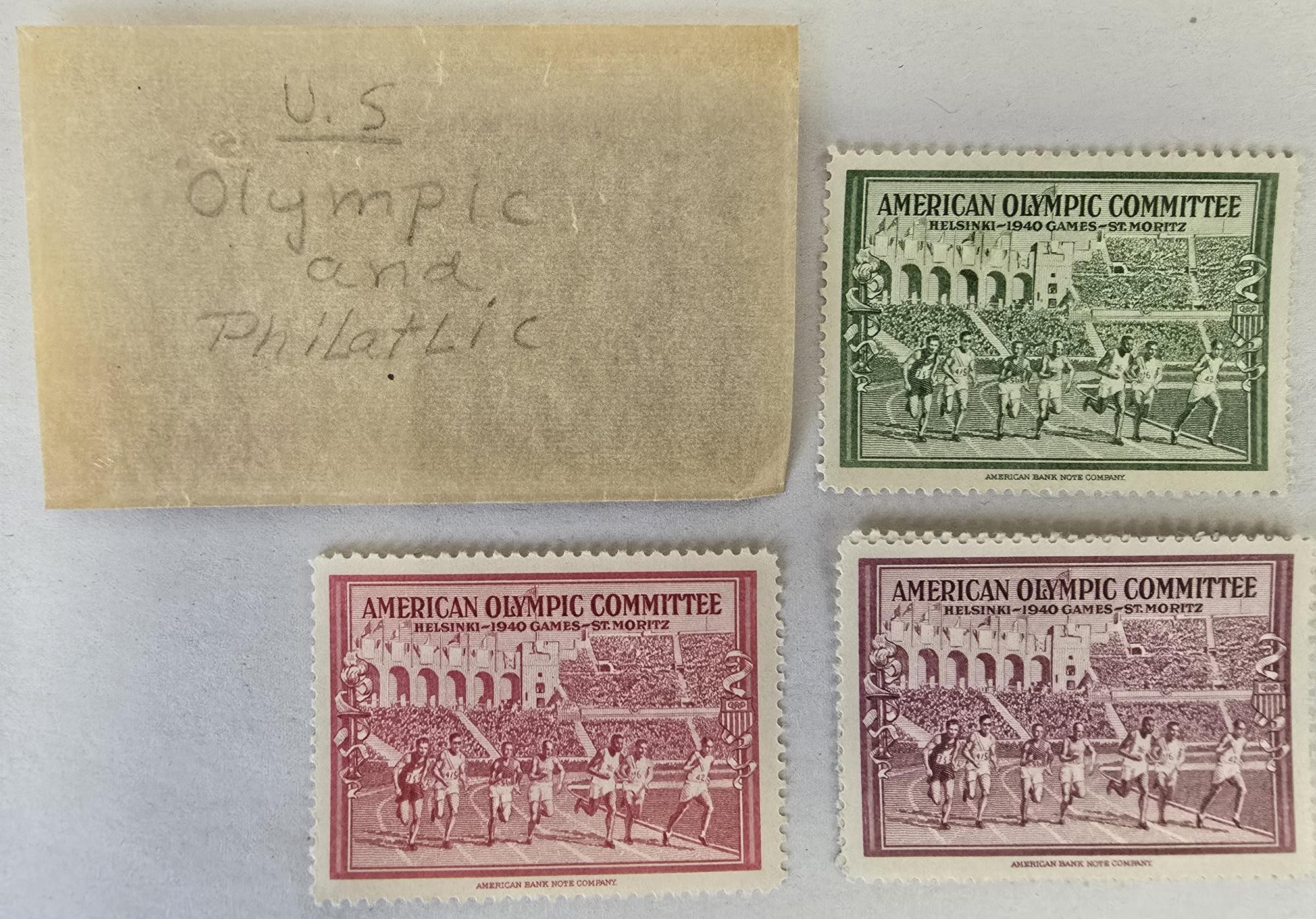 / 3 American Olympic Committee Stamps in Tiny Envelope