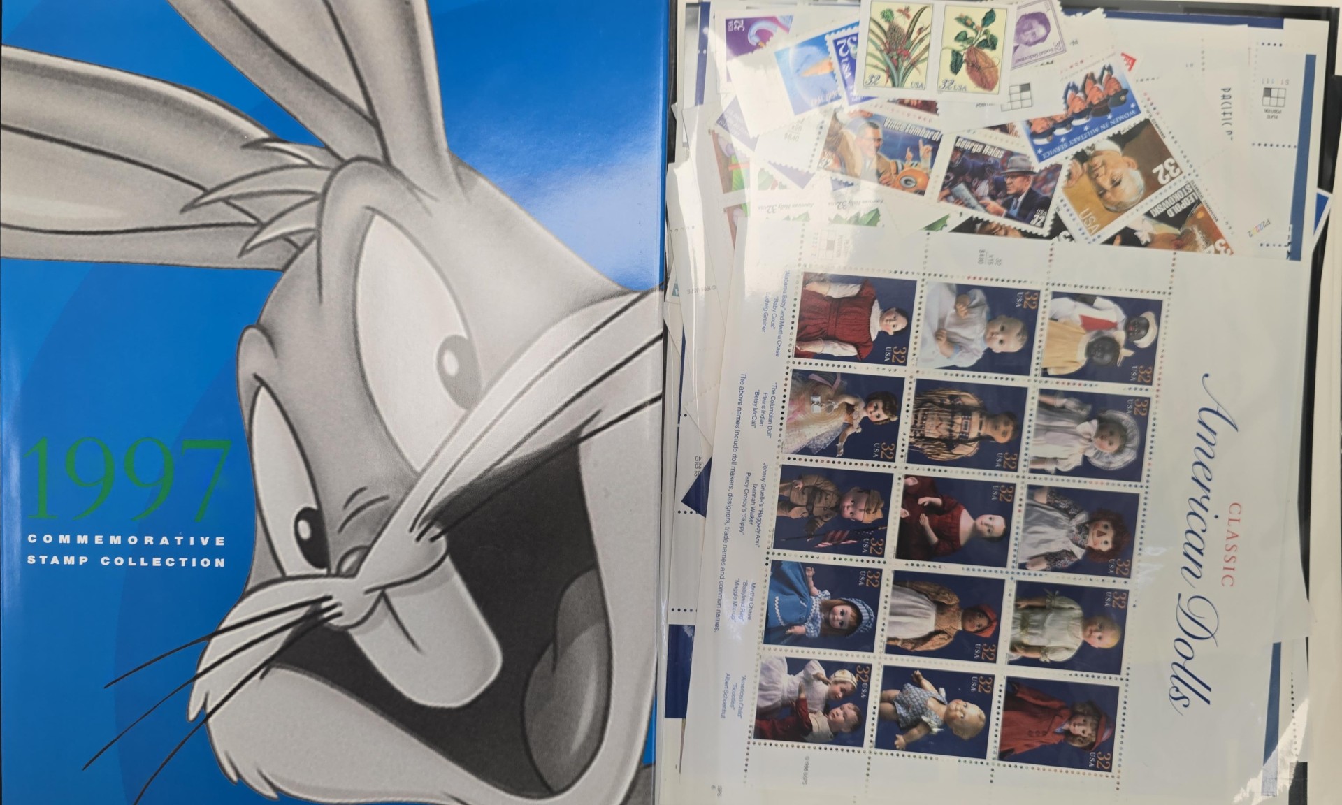 This book is the 1997 Commemorative Stamp Collection book; in a plastic sealed bag are the almost $40 worth of unused collectible stamps; the book itself is hardcover with a dust jacket; like new and the whole thing comes in a white slip box. Very nice.