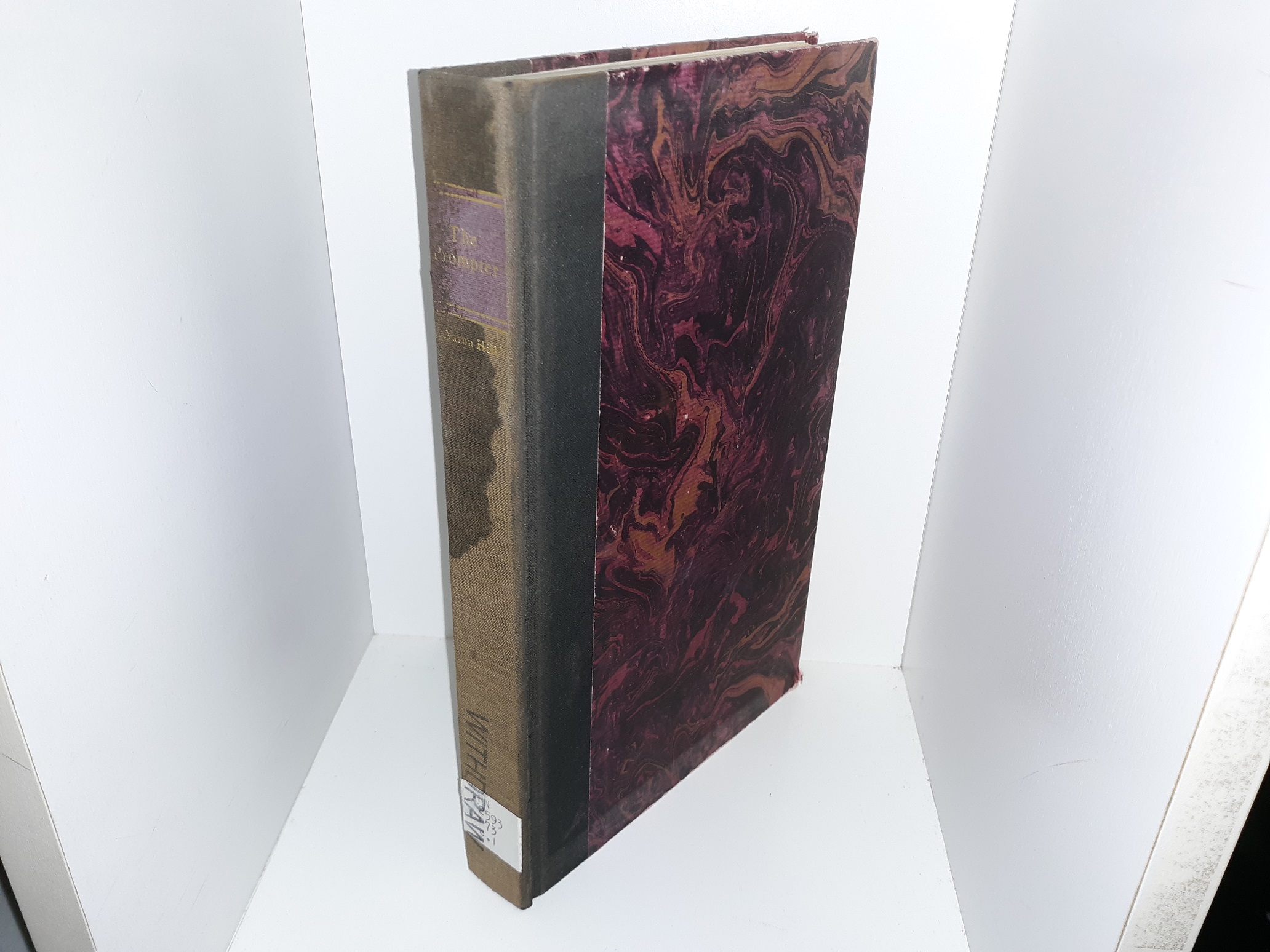 Fair condition hardcover with no dust jacket. The cover has heavy scuffing, fading, an ex-library sticker and ex-library stamp on the spine, and some tears and fraying at the corners and edges. The inside covers and flyleaves have ex-library stamps. The front inside cover has a large ex-library sticker. The front flyleaf has writing in pencil and eraser marks. The edges of the pages have a couple ex-library stamps. The back inside cover and back flyleaf have dark scuff marks, and a torn patch. The back inside cover has an ex-library sticker, and an ex-library catalog card pouch. Text and illustrations throughout are clean, clear, and legible.