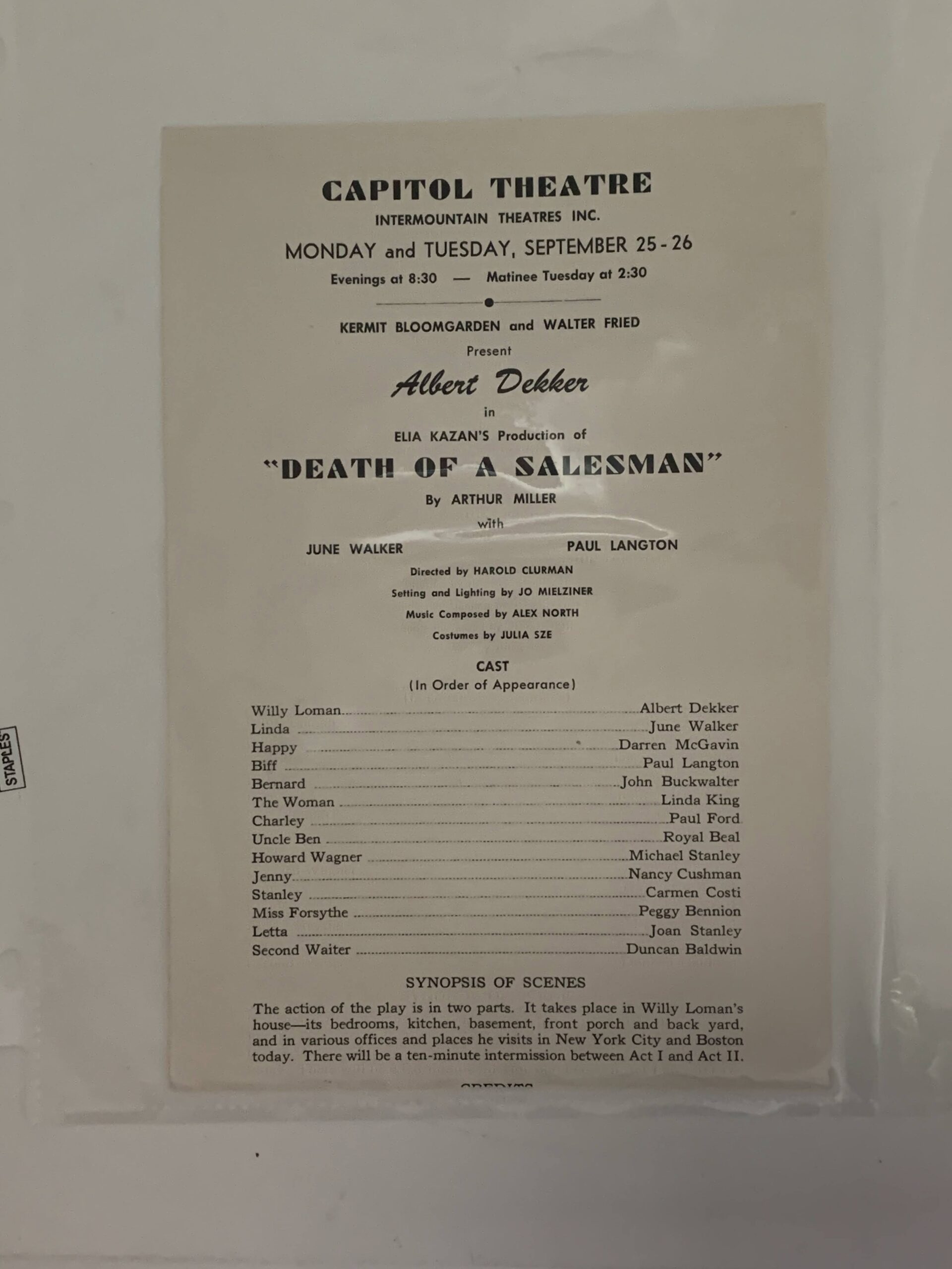 Capitol Theater “Death of a Salesman” playbill