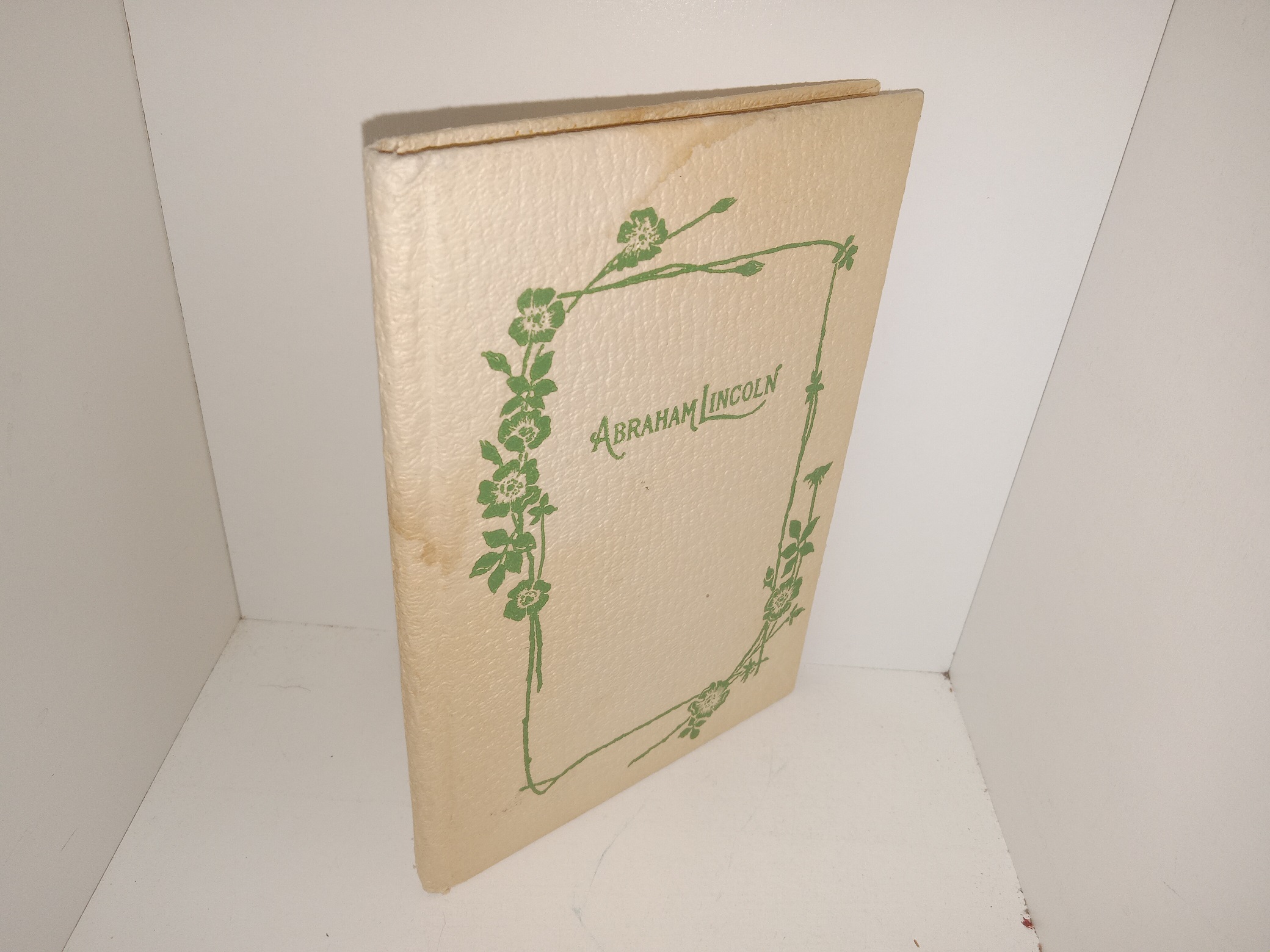 Fair condition, small, thin, cream hardcover, with no dust jacket. The cover has stains, yellowing, and scuffing. the internal binding is torn and loose. Some pages have stains. The front flyleaf has a lengthy inscription written in pen, some additional writing in pencil, and eraser marks.