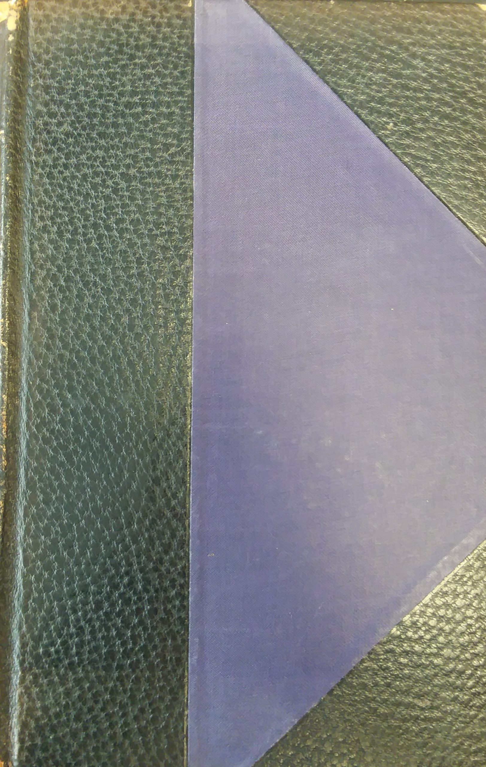 Black and purple hardcover with gold lettering on the spine. Some shelf wear with scuffs and minor discoloration due to age on the front cover. The spine has some tears and major wear. Some pen and pencil markings on the flyleaf, but otherwise the text throughout is clean, clear, and legible. Some tearing and wear on the inner front cover along the spine. In fair condition.