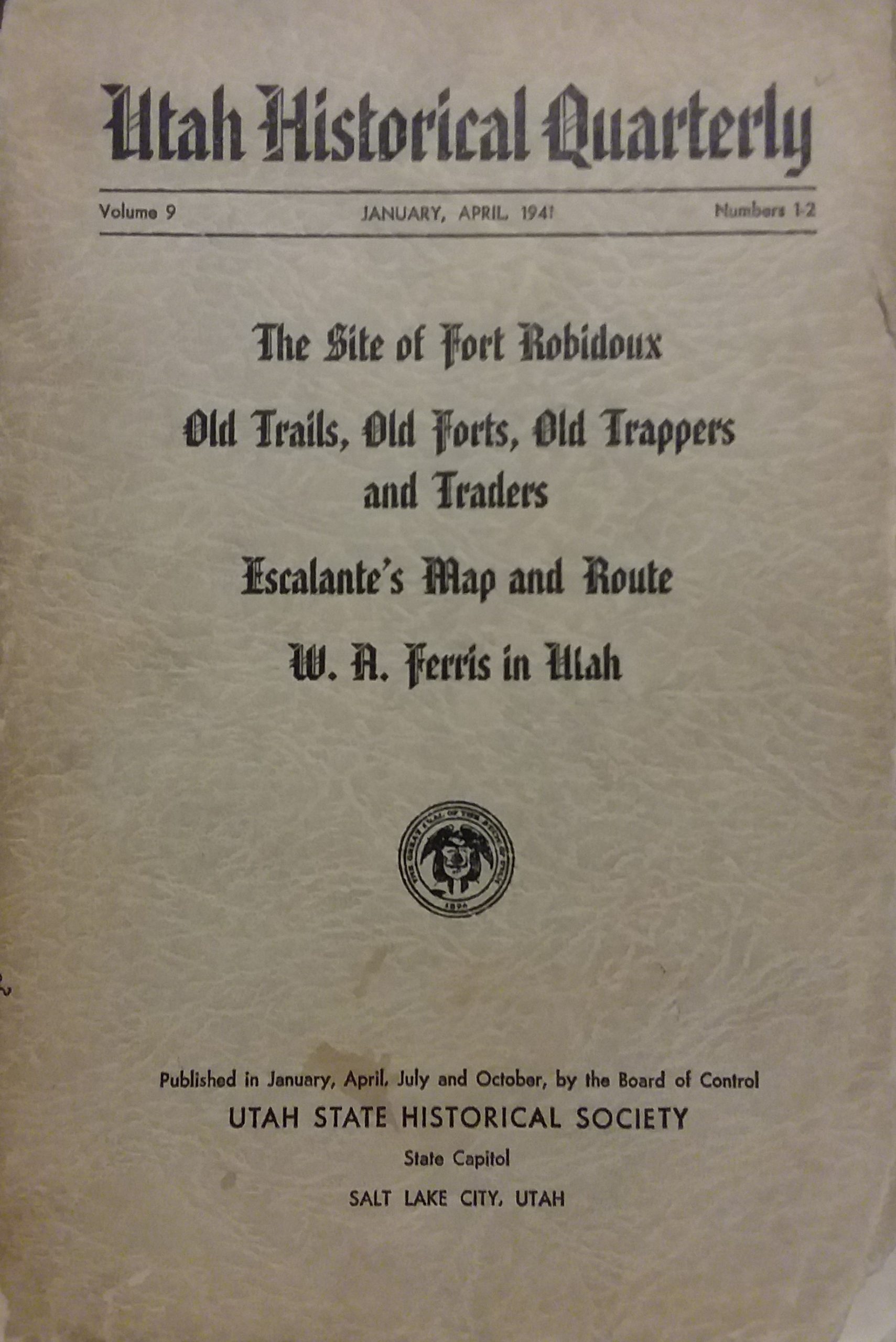 1941 – Utah Historical Quarterly Vol 9 – Utah State Historical Society