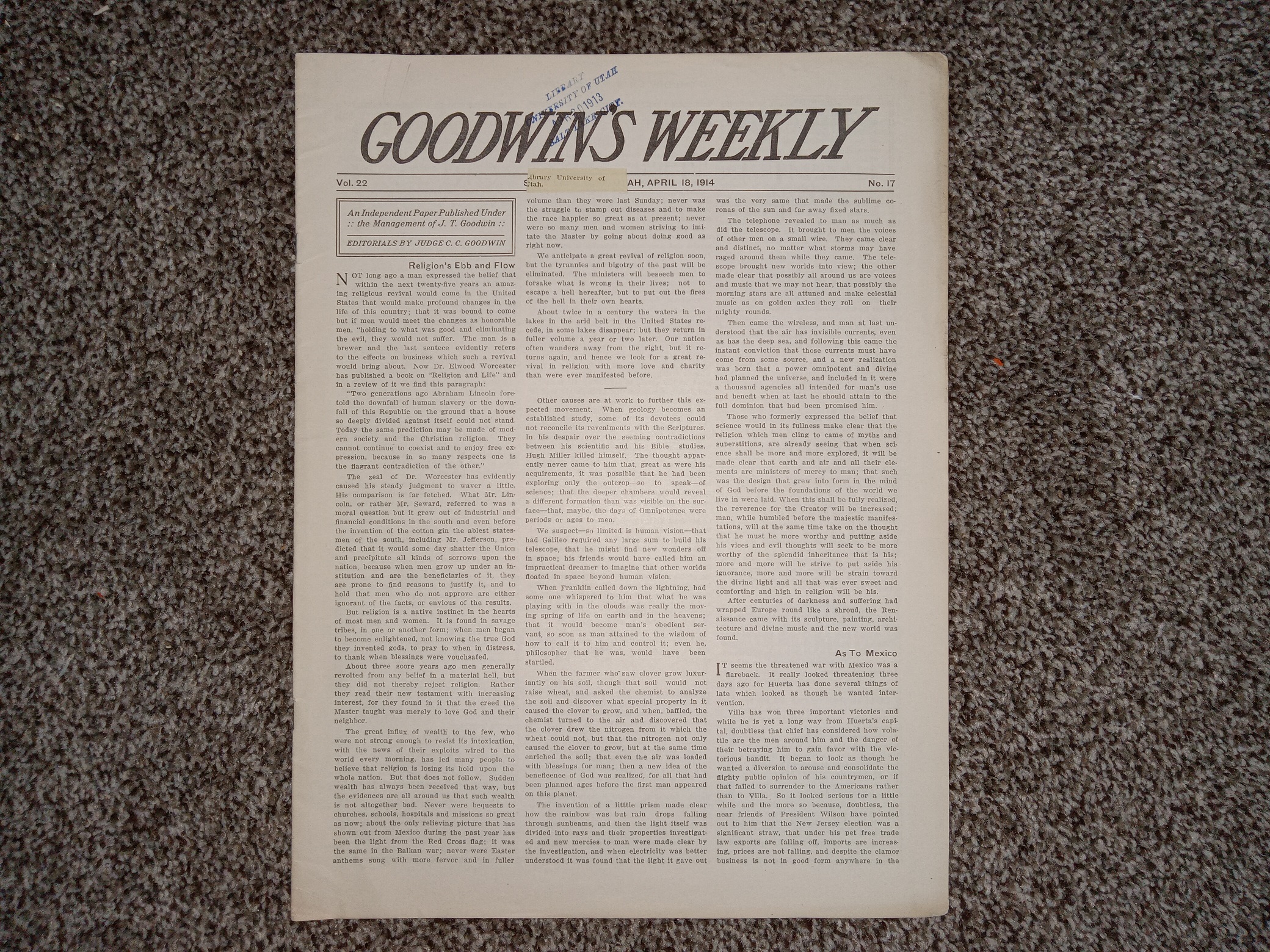 Goodwin’s Weekly: Vol. 22, No. 17, Salt Lake City, Utah, April 18, 1914