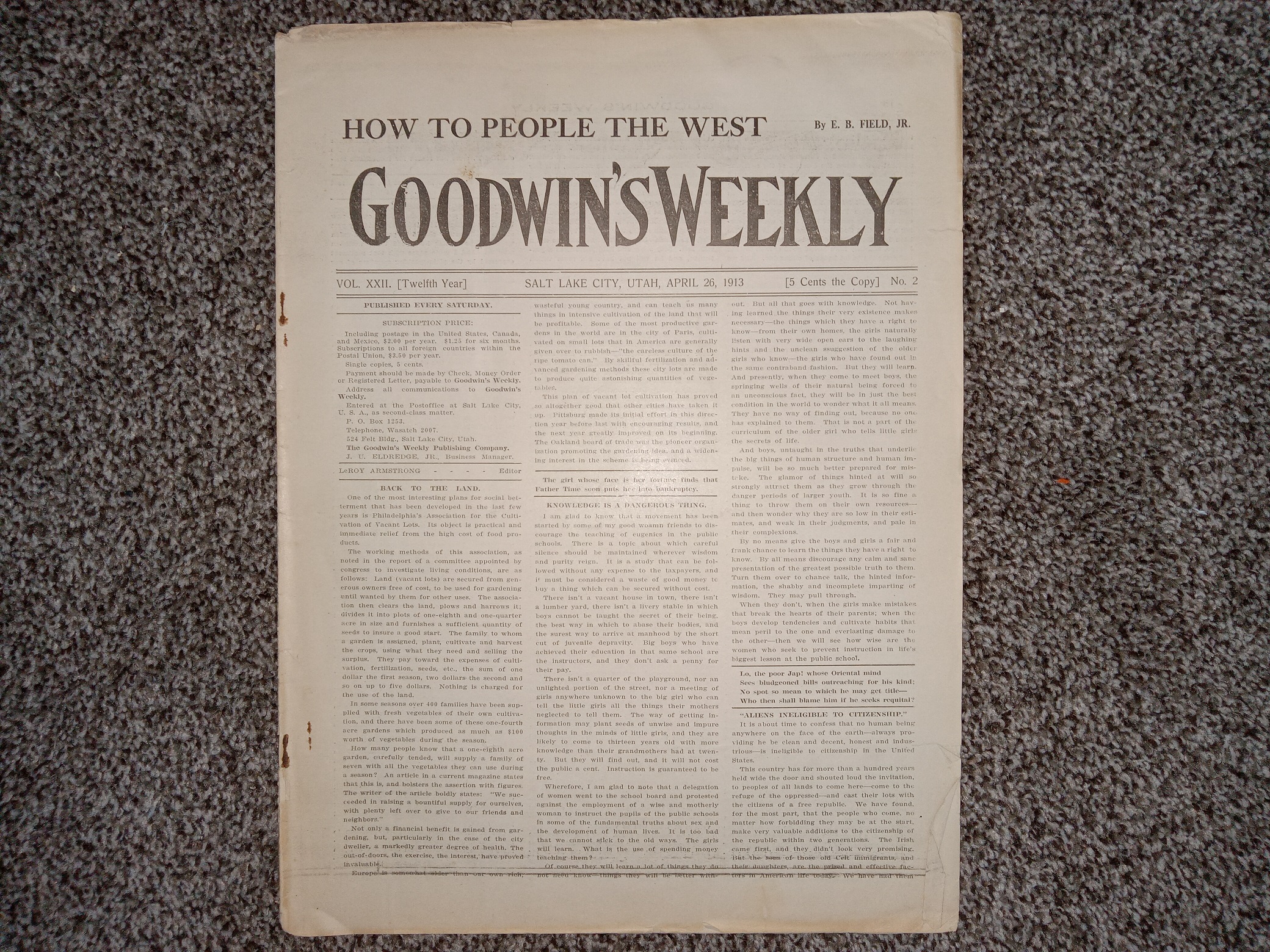 Goodwin’s Weekly: Vol. 22 [Twelfth Year], No. 2, Salt Lake City, Utah, April 26, 1913