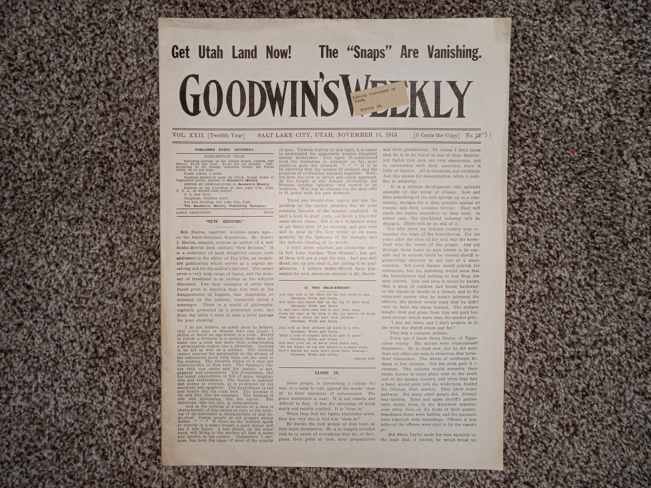 Goodwin’s Weekly: Vol. 22 [Twelfth Year], No. 31, Salt Lake City, Utah, November 15, 1913
