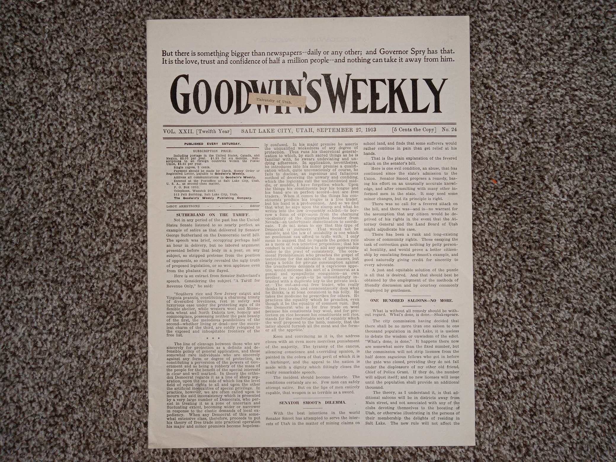 Goodwin’s Weekly: Vol. 22 [Twelfth Year], No. 24, Salt Lake City, Utah, September 27, 1913