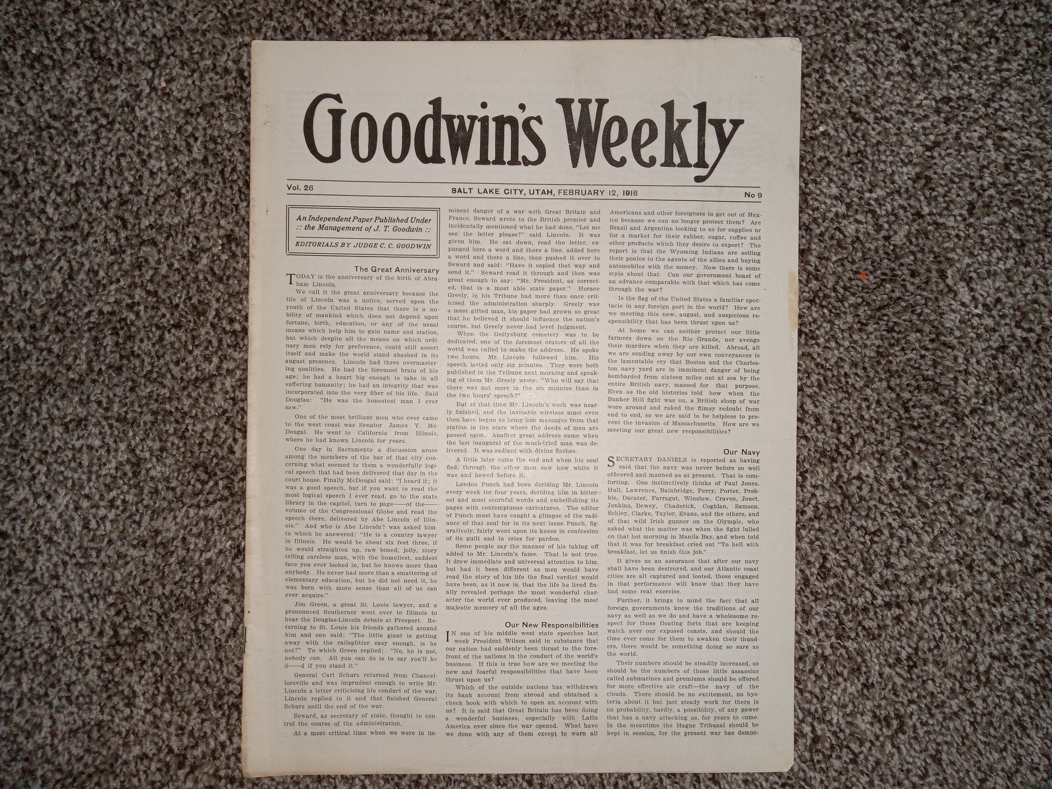 Goodwin’s Weekly: Vol. 26, No. 9, Salt Lake City, Utah, February 12, 1916