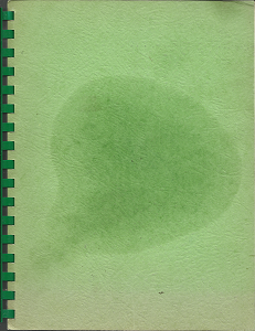 No other copies known to exist. Good condition, green, comb-bound book. Front cover has a small stain, and some wrinkling along the top edges. Back cover has a large stain that very faintly fades through to the last page of the book. Said stain doesn’t affect the legibility of any text or illustrations (see image gallery). Cover page has some pencil marks. Text and illustrations throughout book are clean, clear, and legible……………..v500 Bx625