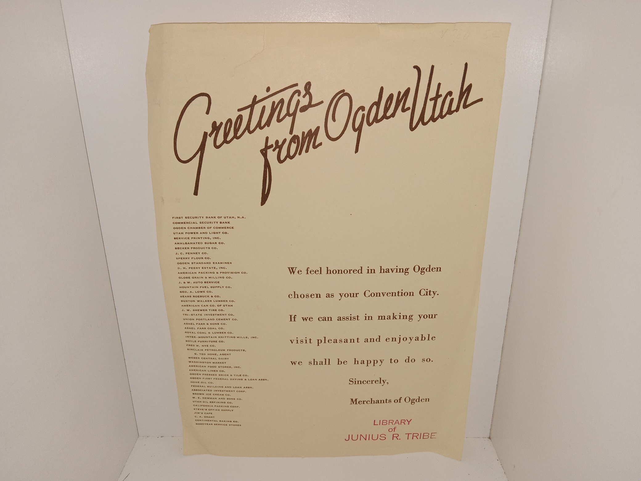 Fair condition, cream, single sheet. The sheet has tears, creases, an ink stamp, and some writing in pencil on the back.