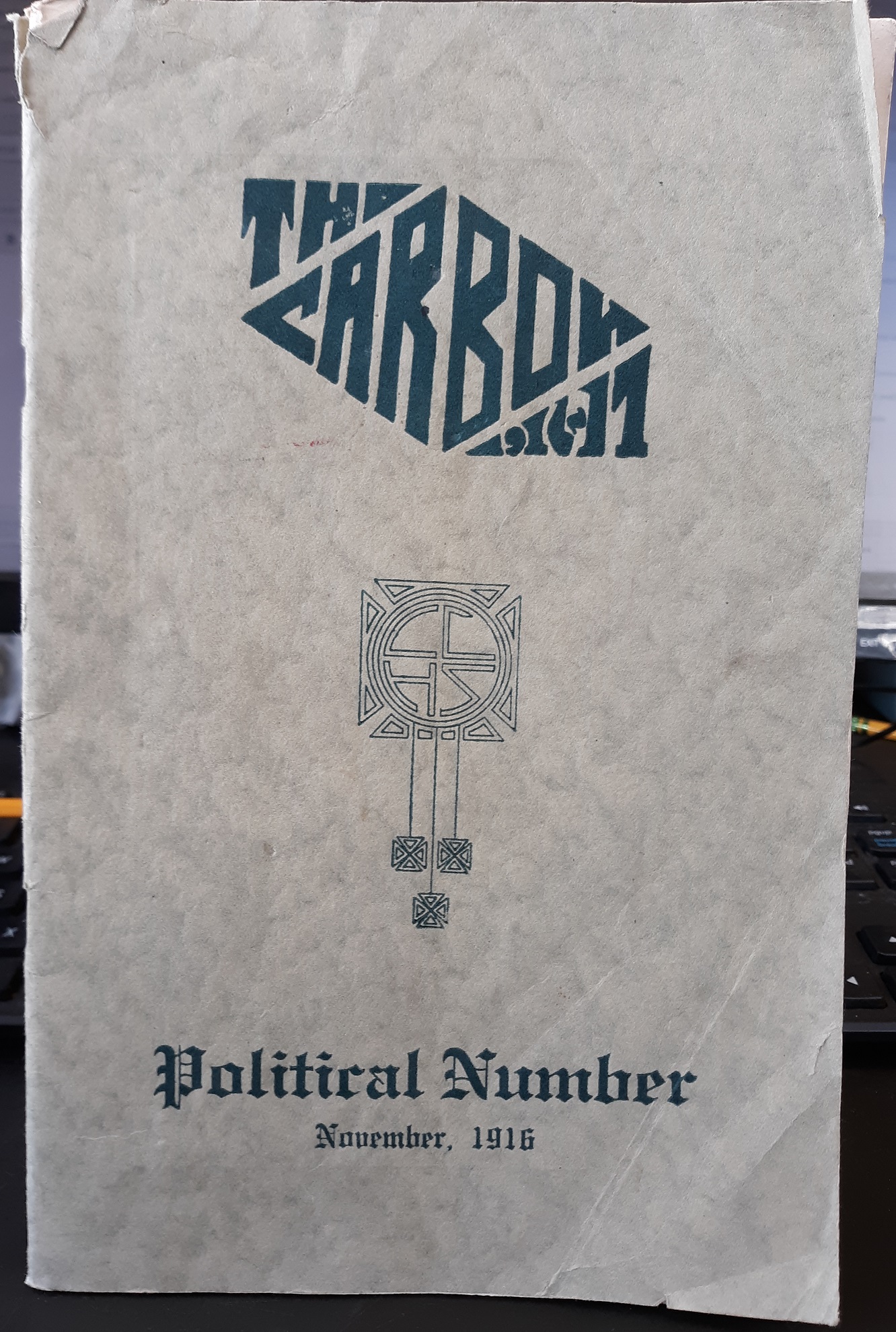Fair condition, thin, green-gray staple-bound pamphlet. The cover has some tears on the upper spine, with a some creasing, and some scuff marks. Some pages are creased. The first page has some pencil marks. Text and illustrations throughout are clean, clear, and legible…………………………………………v1 Bx226