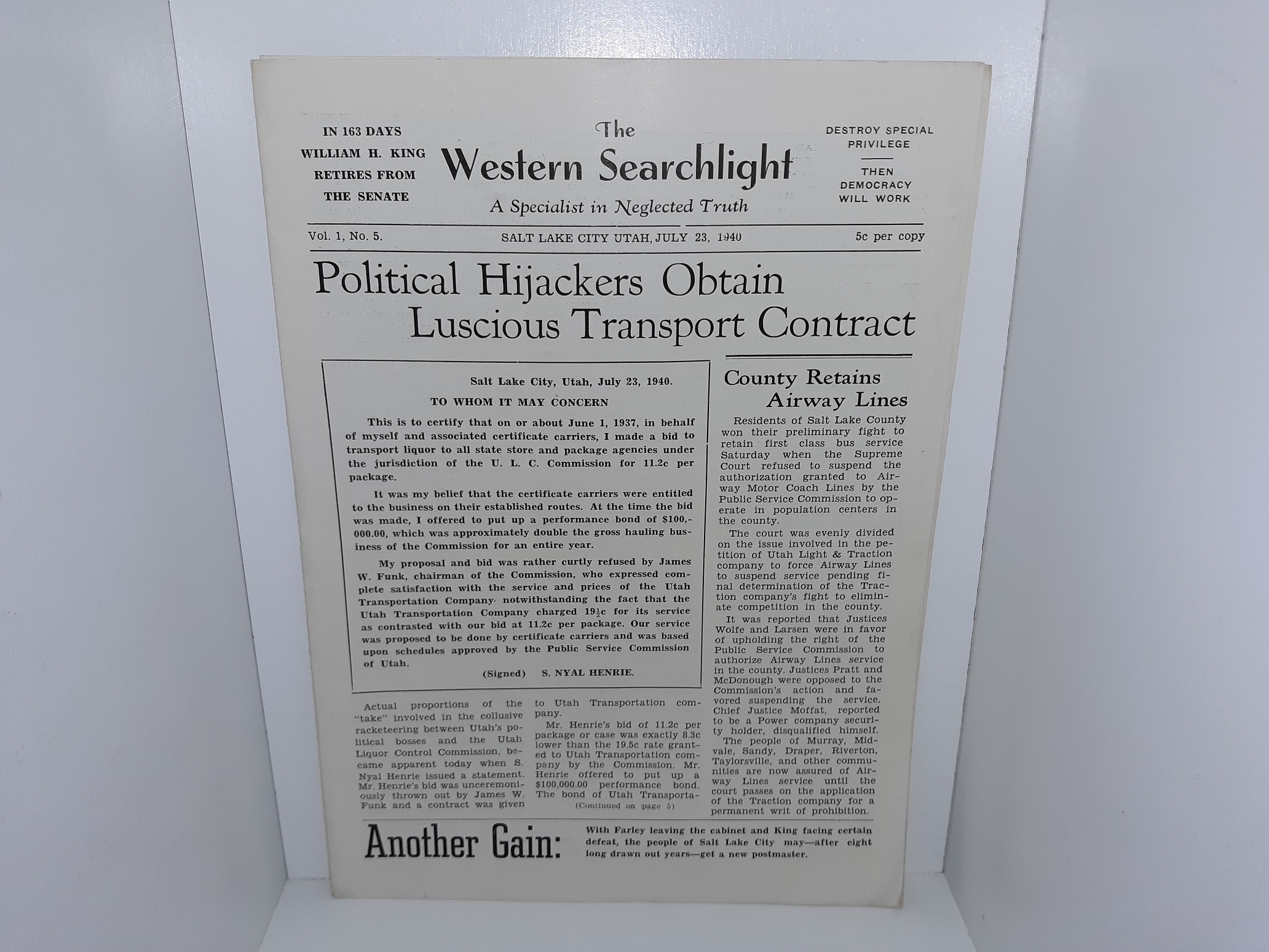 The Western Searchlight: A Specialist in Neglected Truth: Vol. 1, No. 5, Salt Lake City, Utah, July 23, 1940