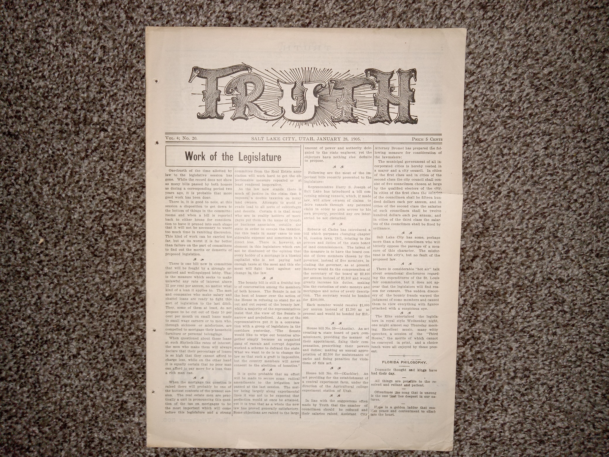 Truth: Vol. 4, No. 20, Salt Lake City, Utah, January 28, 1905