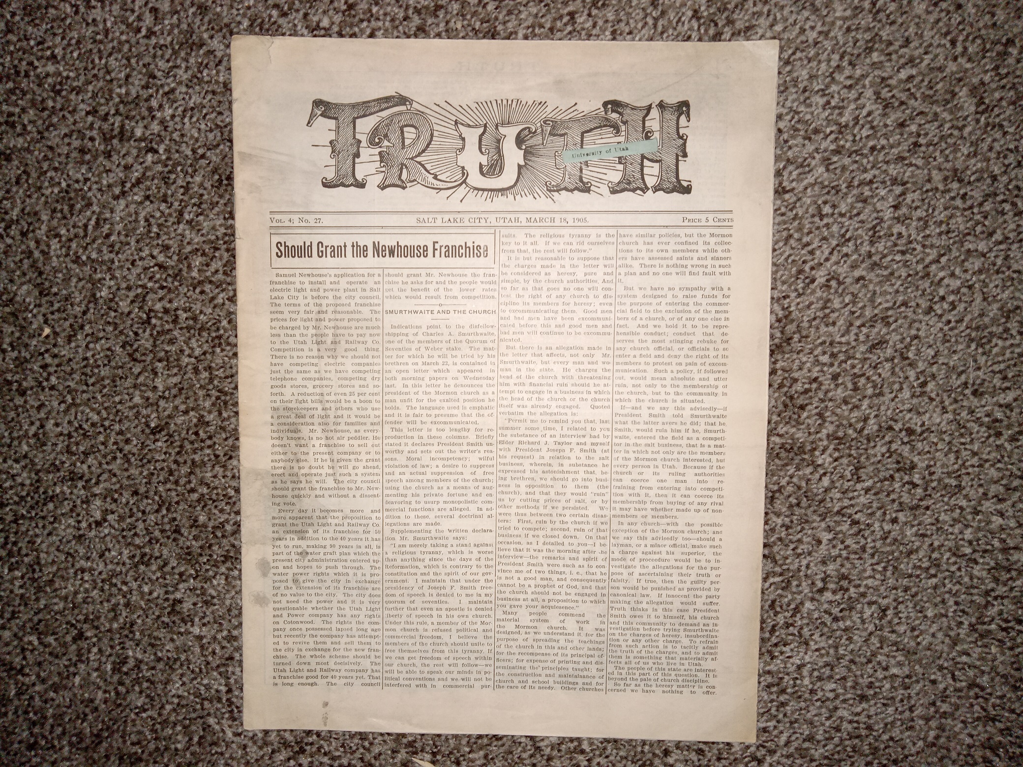 Truth: Vol. 4, No. 27, Salt Lake City, Utah, March 18, 1905