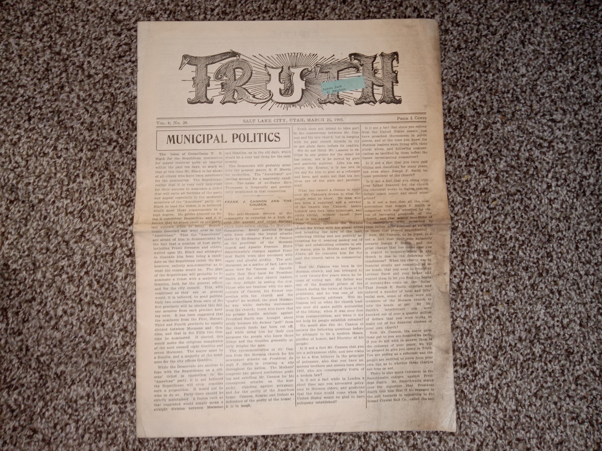 Truth: Vol. 4, No. 28, Salt Lake City, Utah, March 25, 1905