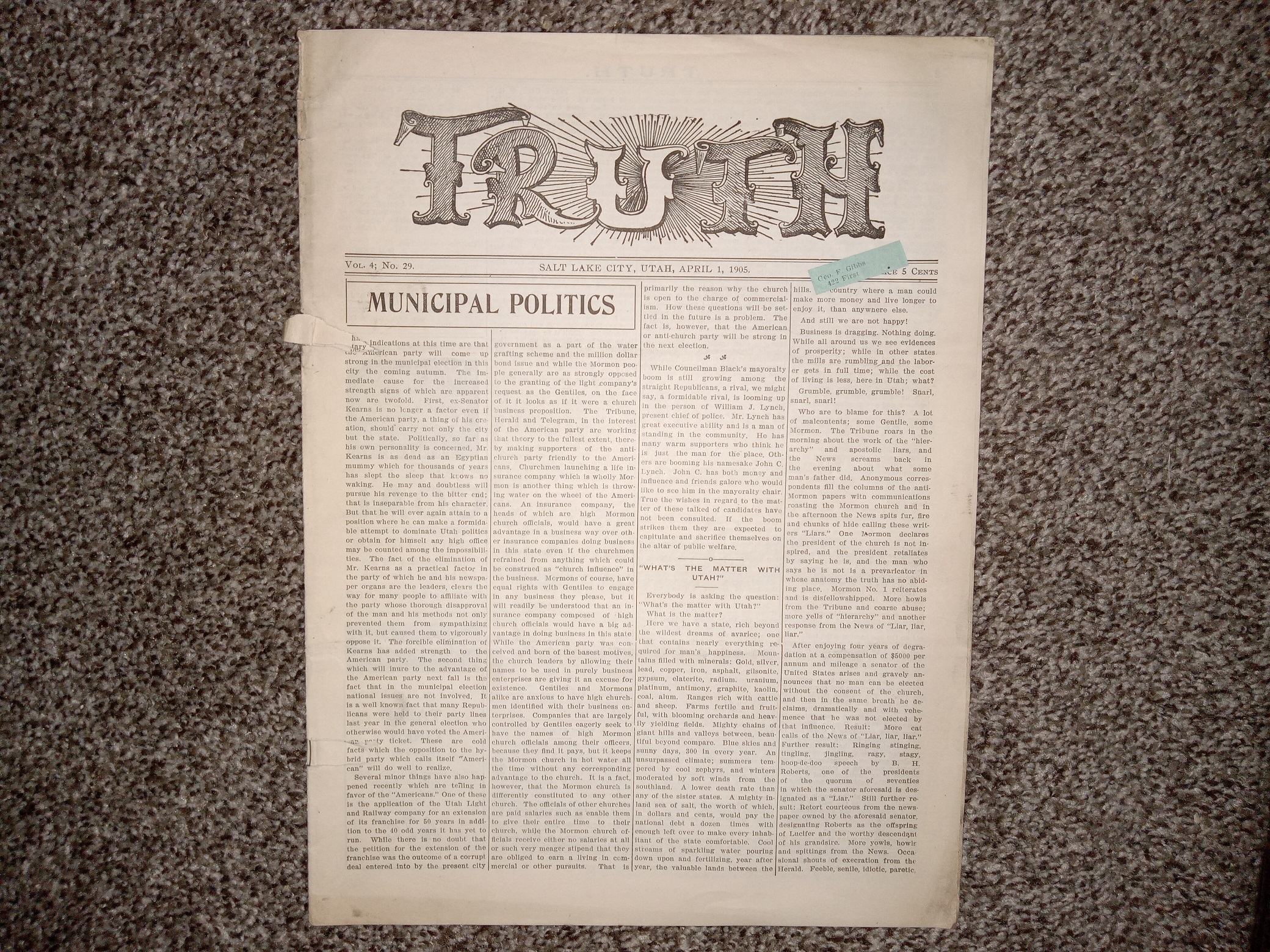 Truth: Vol. 4, No. 29, Salt Lake City, Utah, April 1, 1905