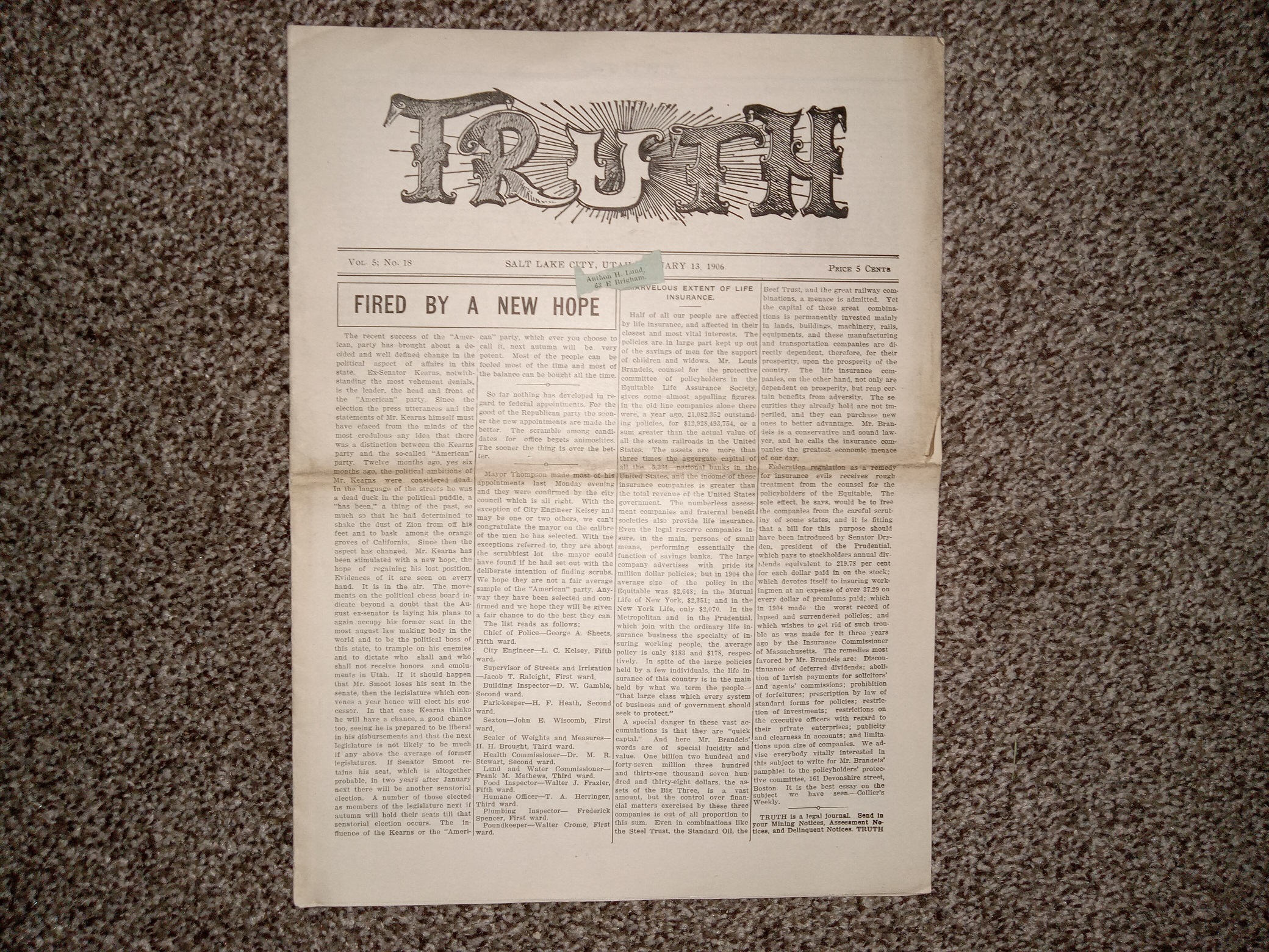 Truth: Vol. 5, No. 18, Salt Lake City, Utah, January, 13, 1906