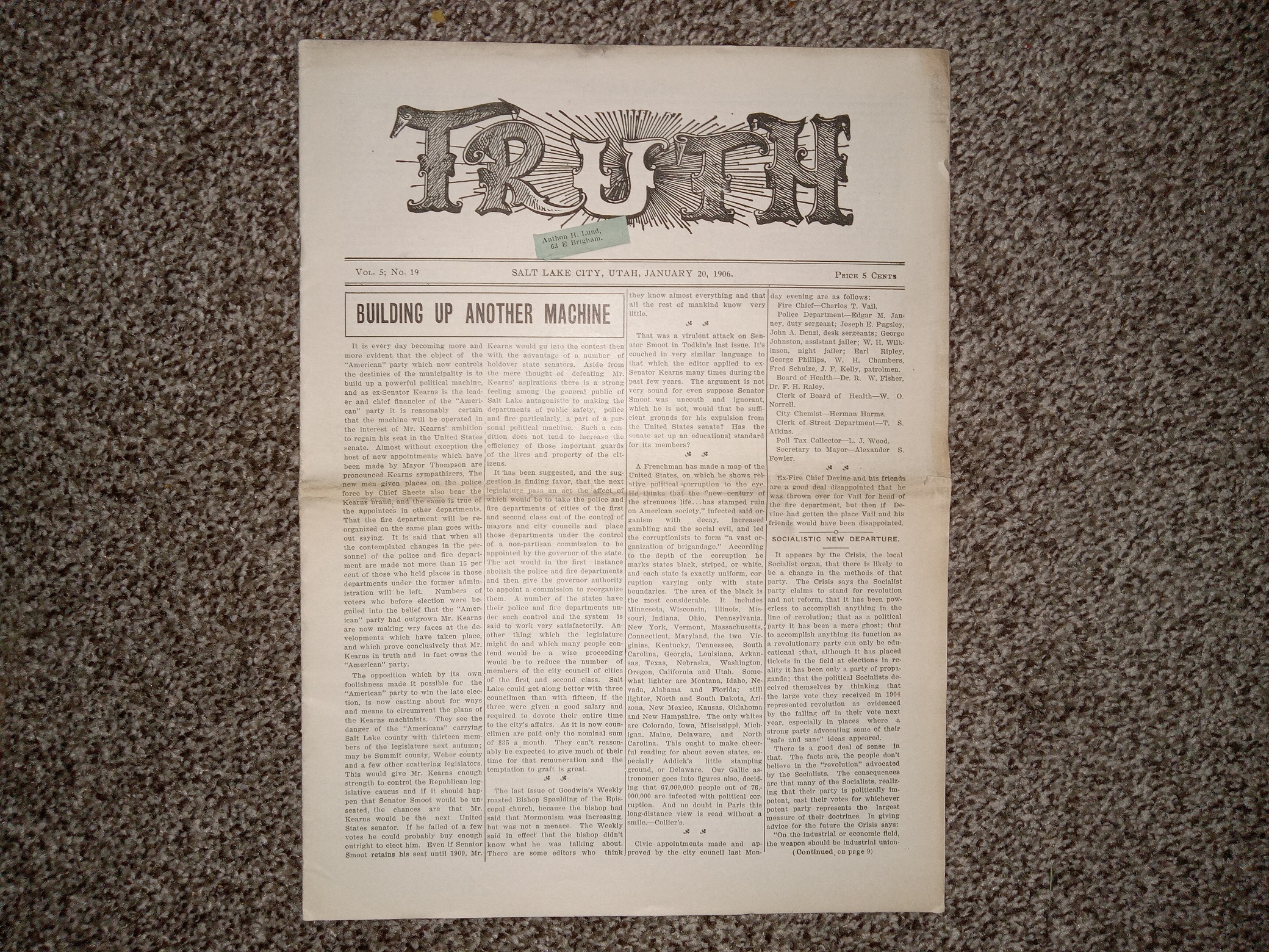 Truth: Vol. 5, No. 19, Salt Lake City, Utah, January 20, 1906
