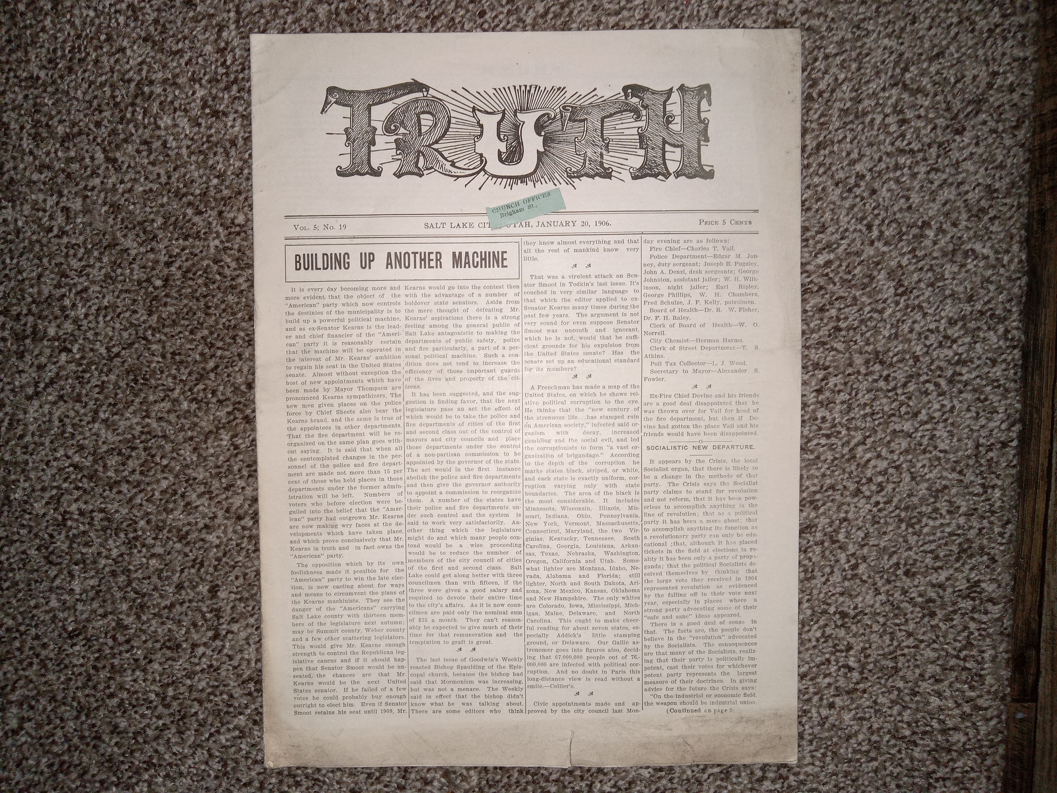 Truth: Vol. 5, No. 19, Salt Lake City, Utah, January 20, 1906