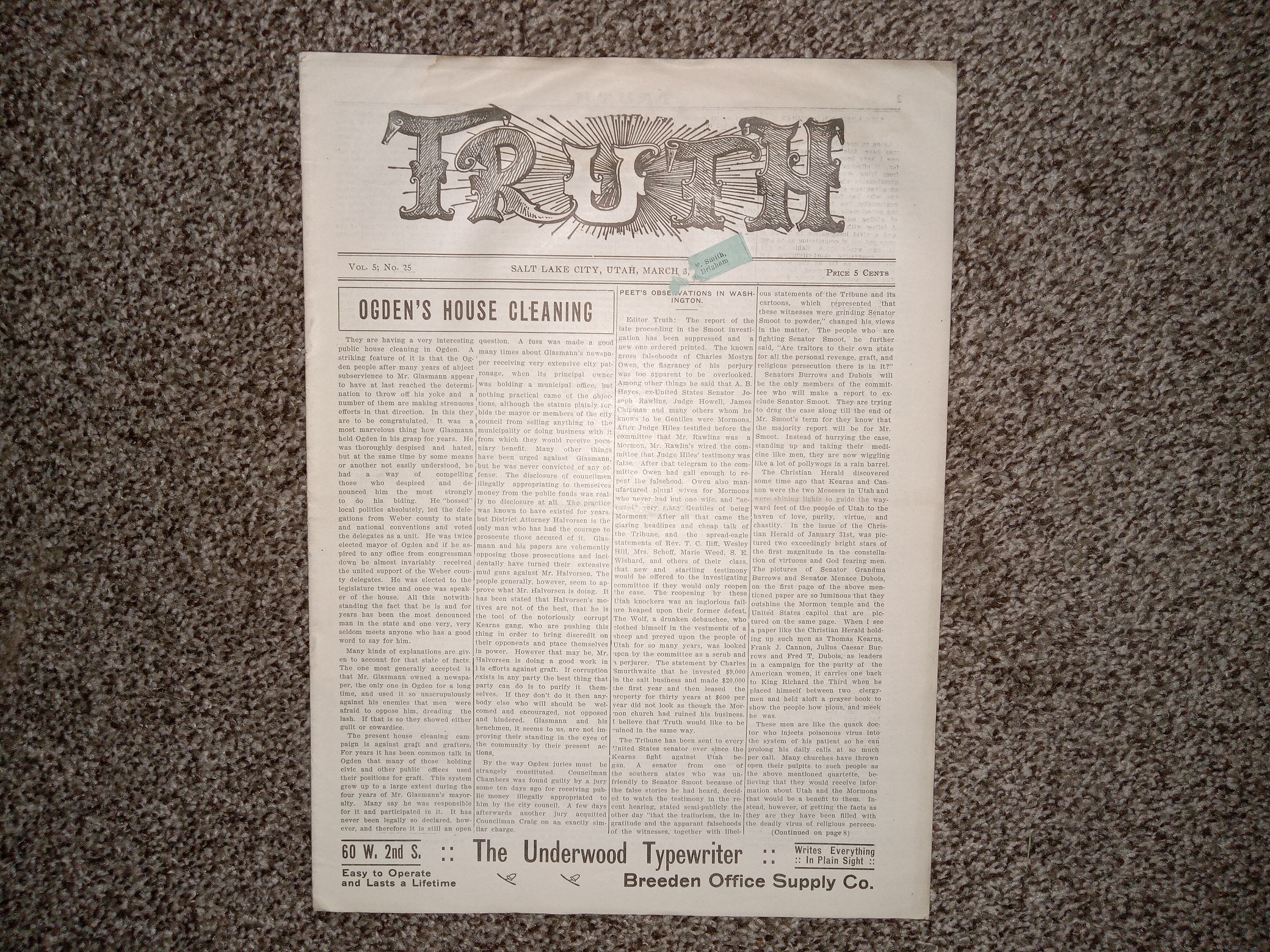 Truth: Vol. 5, No. 25, Salt Lake City, Utah, March 3, 1906