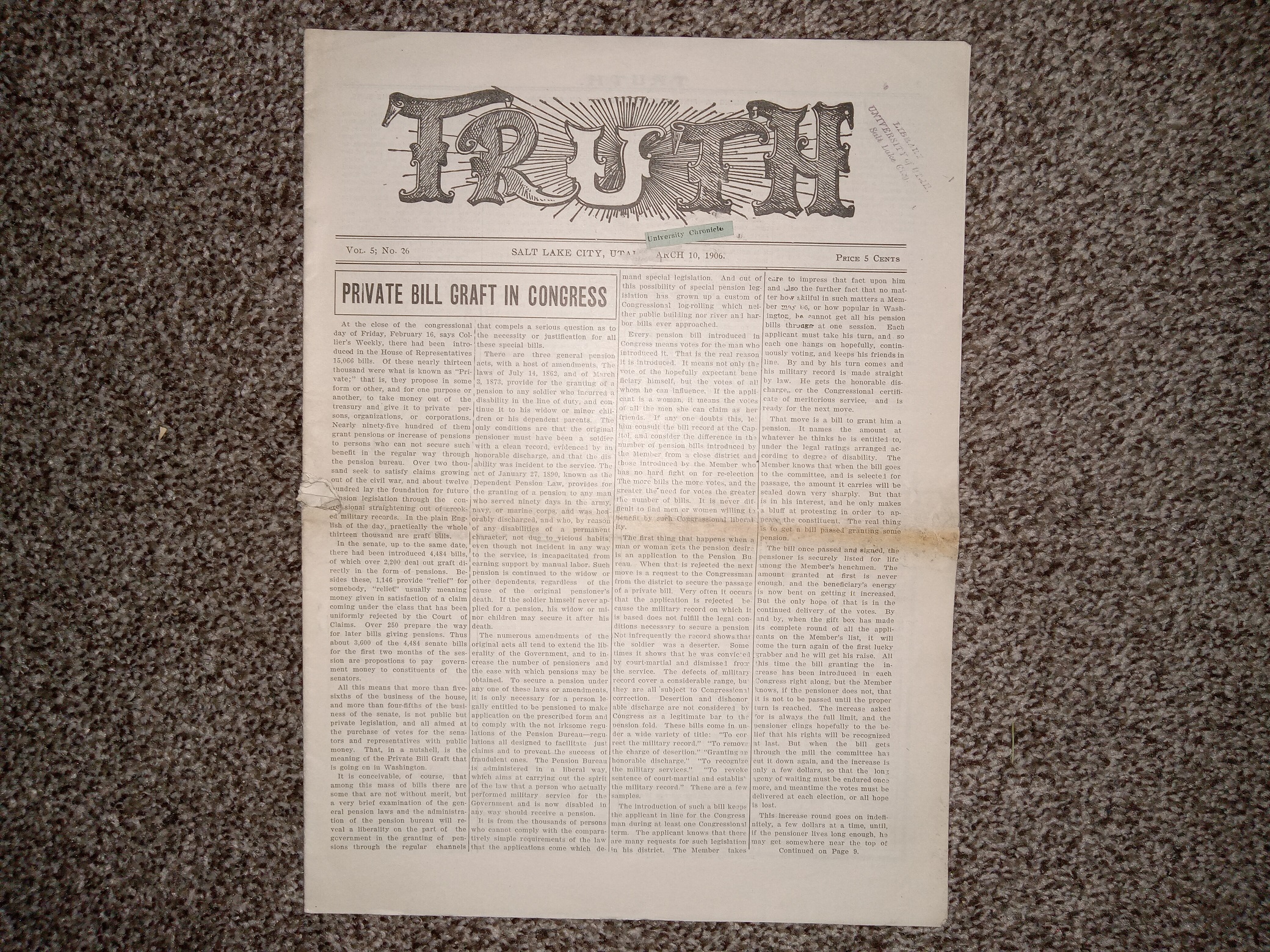 Truth: Vol. 5, No. 26, Salt Lake City, Utah, March, 10, 1906