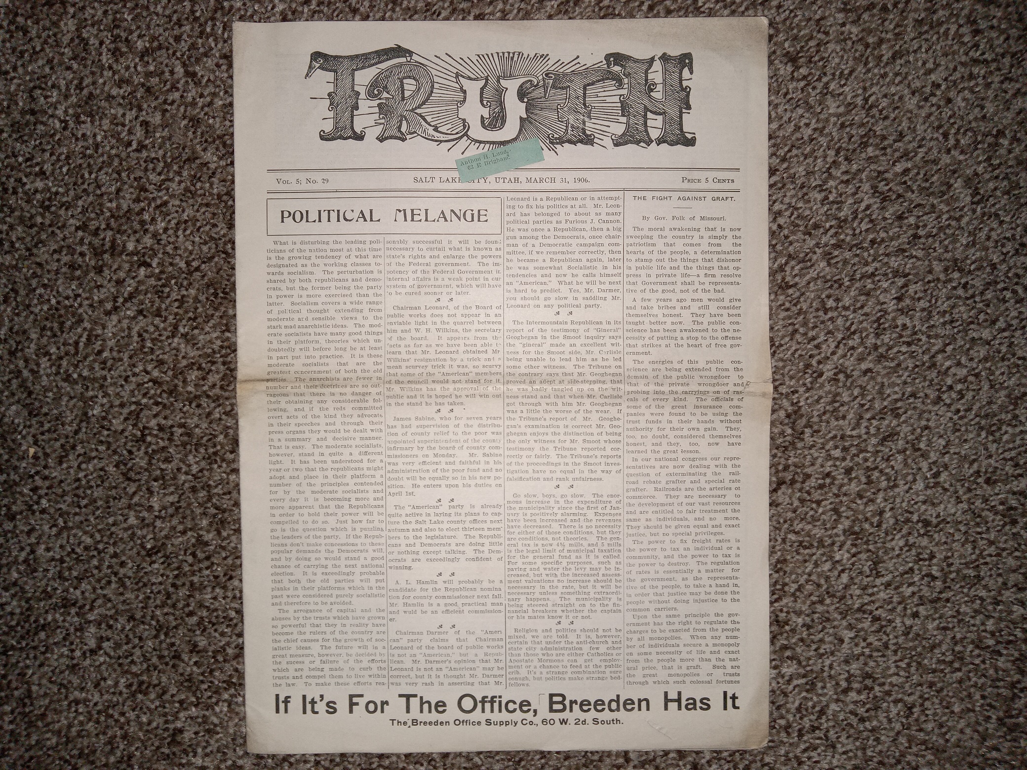Truth: Vol. 5, No. 29, Salt Lake City, Utah, March 31, 1906