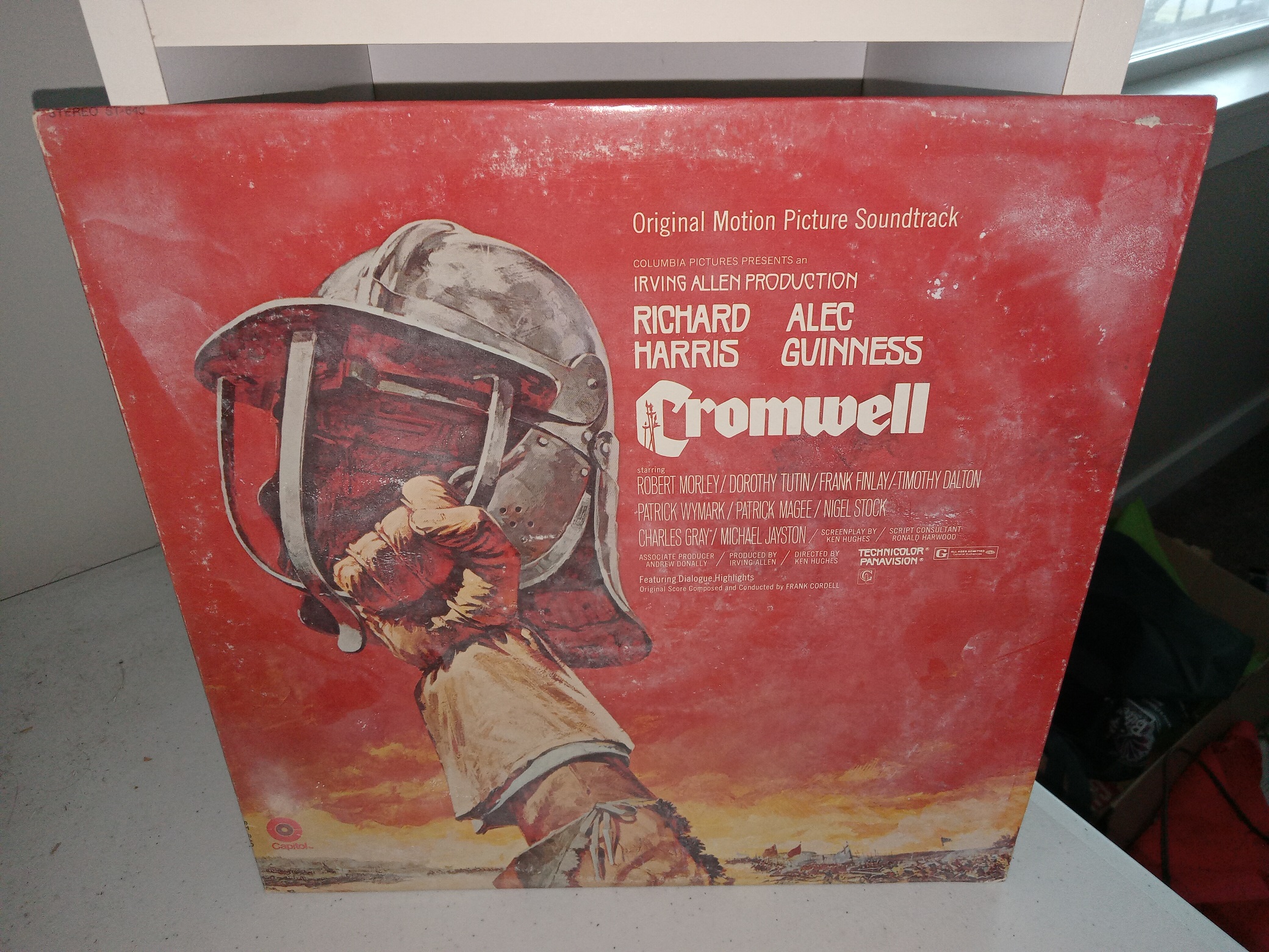 Good condition vinyl record kept within its original case. The case has heavy scuffing, stains, bent corners, and some fraying at the corners. The record has no visible wear.