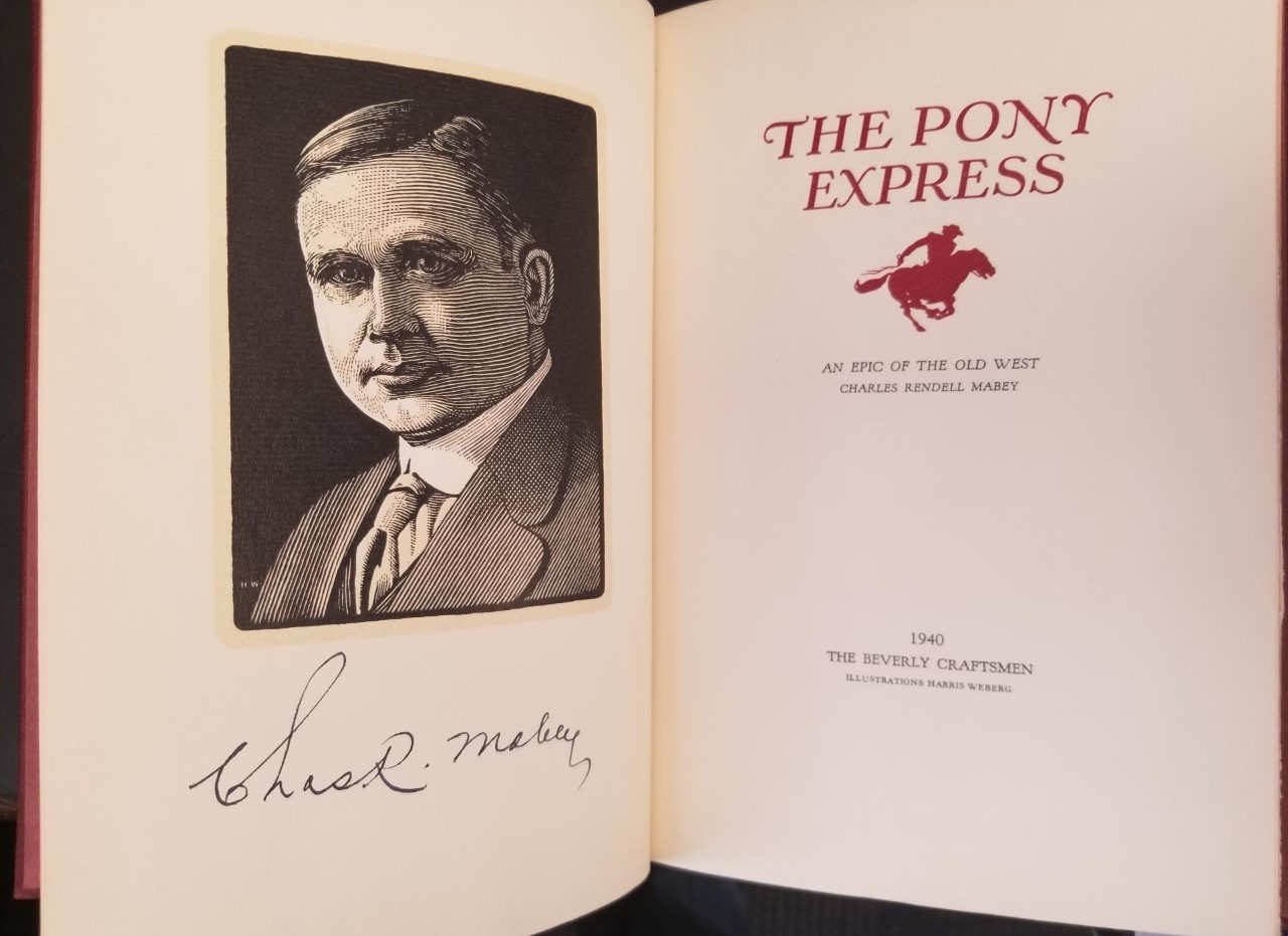 1940 — The Pony Express ~ An Epic of the Old West — by Charles Rendell Mabey — Signed by the Author — Hardbound