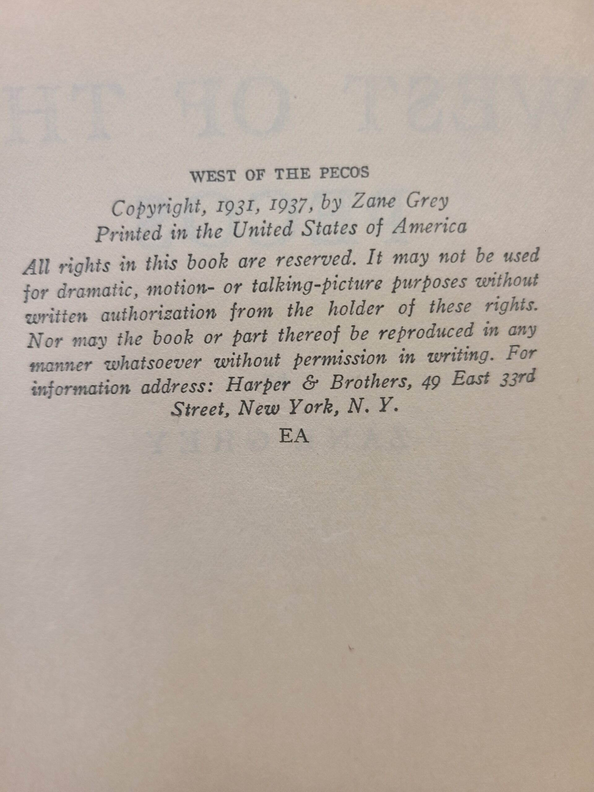 West of the Pecos-Zane Grey-hardcover with dust-jacket-1937